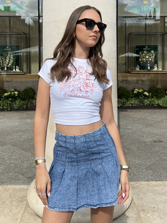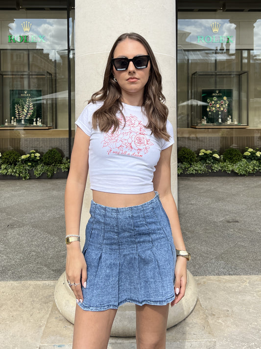 DENIM MINI PLEATED SKIRT