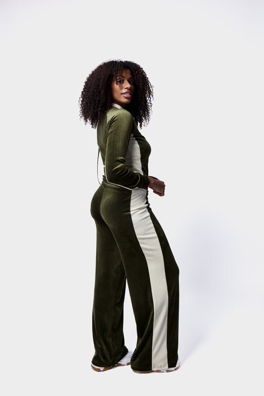 VELVET WIDE LEG TRACKSUIT PANTS