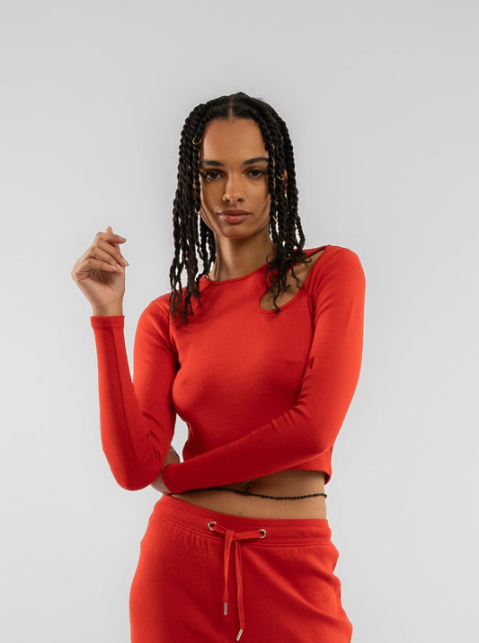 RIBBED CUT OUT DETAIL LONG SLEEVE CROP TOP