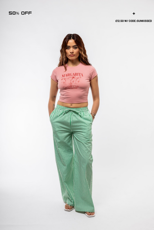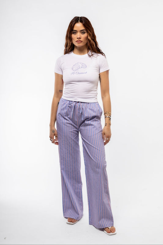 TIE WIDE LEG MULTI STRIPE TROUSERS