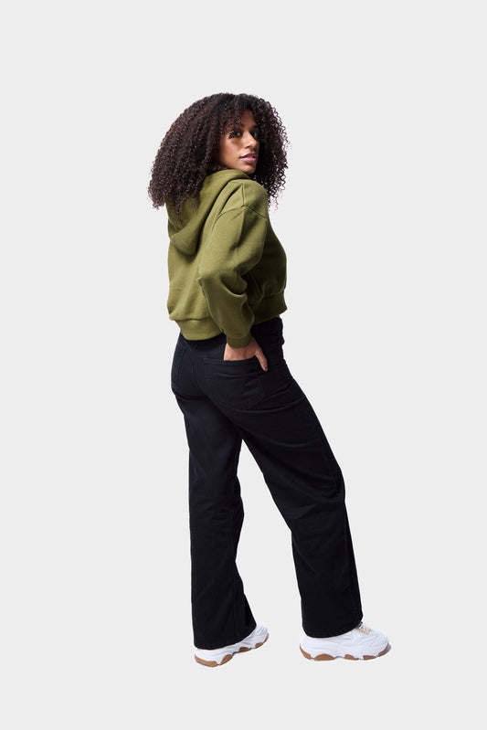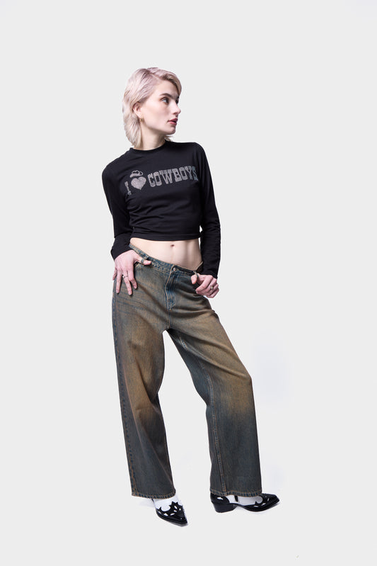WIDE LEG DENIM JEANS IN BLACK WASH