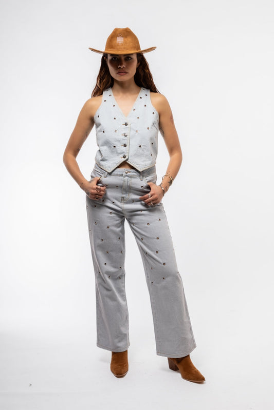 WIDE LEG DENIM JEANS IN SAND WASH BLUE