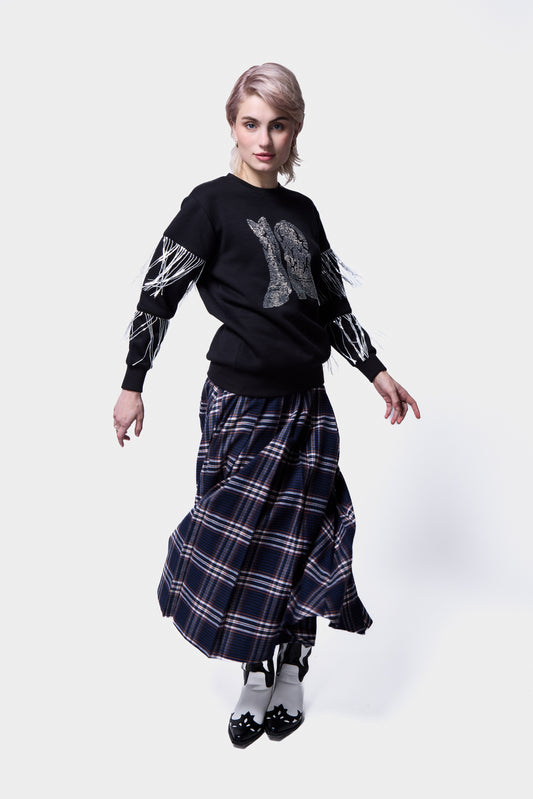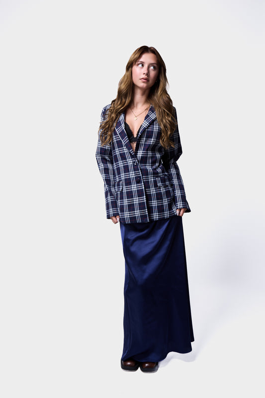 CHECK BUCKLE PLEAT MAXI SKIRT