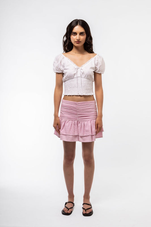 GINGHAM SIDE TIE WIDE LEG TROUSERS
