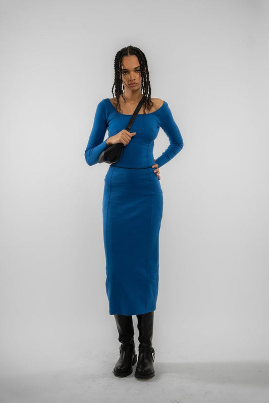 RIB MIDI DRESS SCOOP NECK