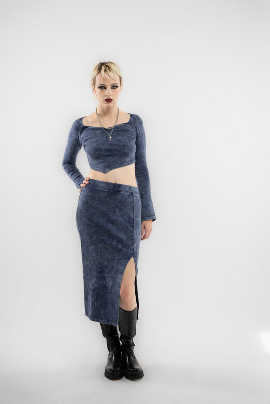 ACID WASH SIDE SLIT MIDI SKIRT