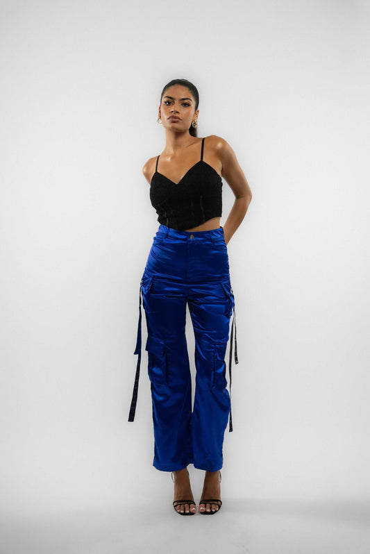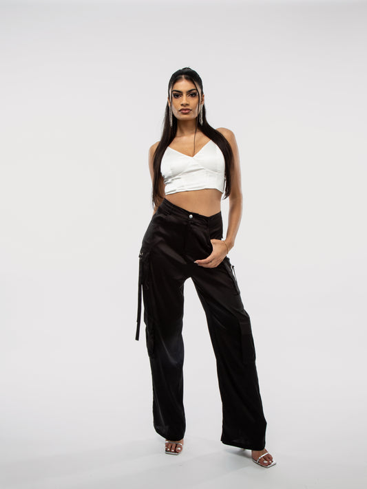 SaleSATIN CARGO TROUSERS