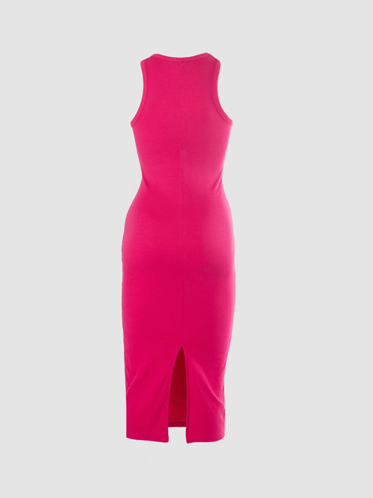 RIB RACER MIDI BASIC DRESS IN BEETROOT PINK