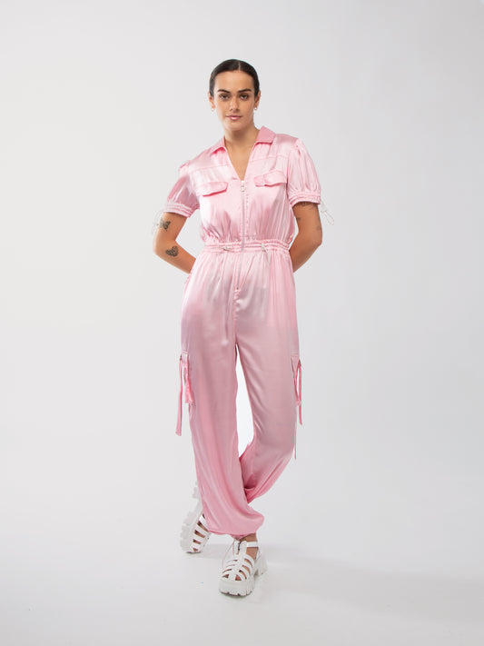 SaleSATIN CARGO JUMPSUIT