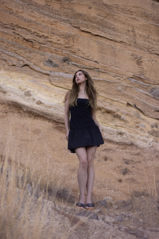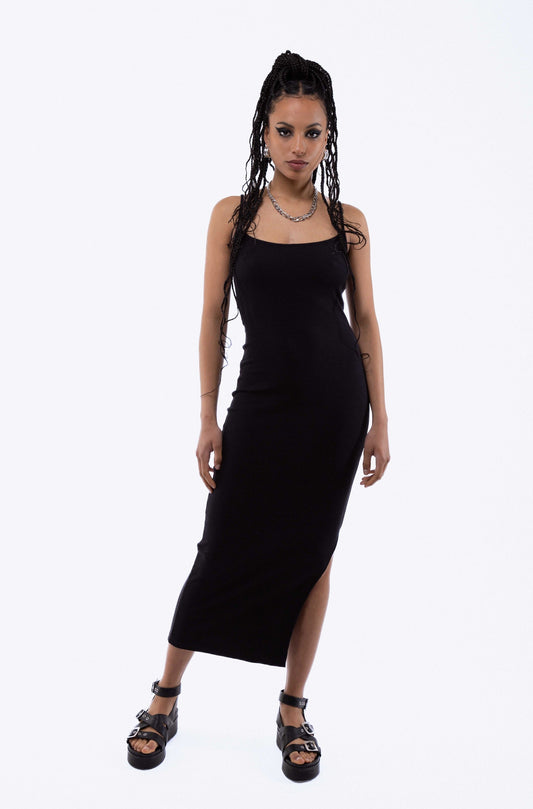 RIBBED STRAPPY SQUARE NECK MIDAXI DRESS