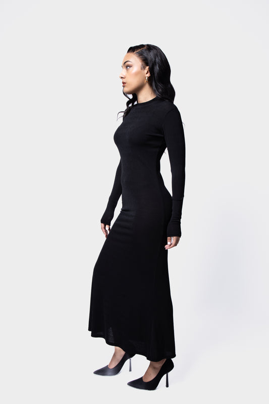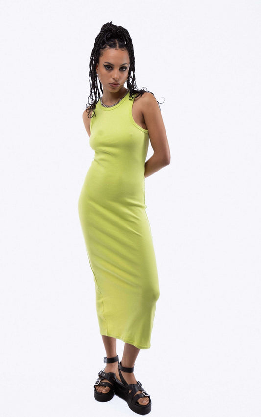 BASIC STRIPE RIB RACER NECK MIDI DRESS