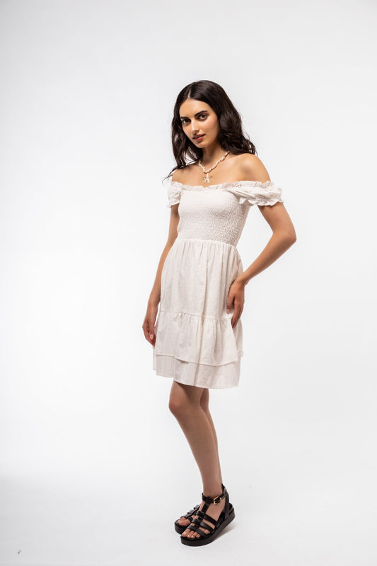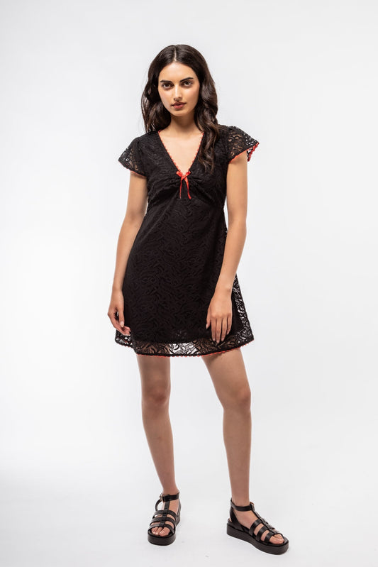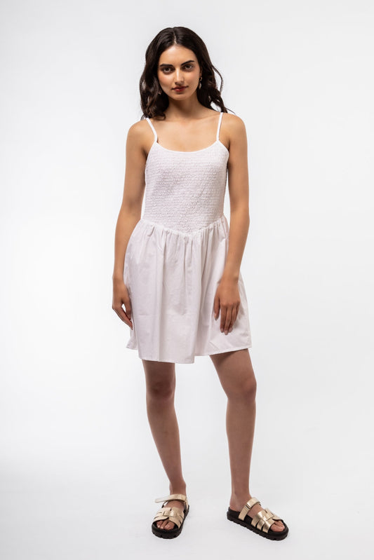 BRODERIE SPAGHETTI STRAP CROSS-BACK MINI DRESS