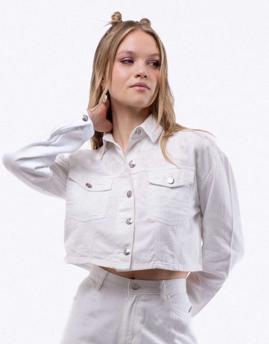 RAW EDGE CROPPED JACKET IN LIGHT BLUE DENIM