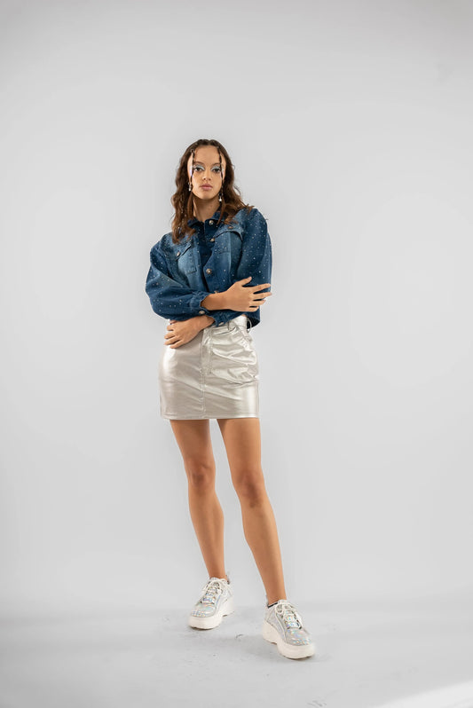 SILVER MATTE METALLIC FAUX LEATHER TRUCKER JACKET