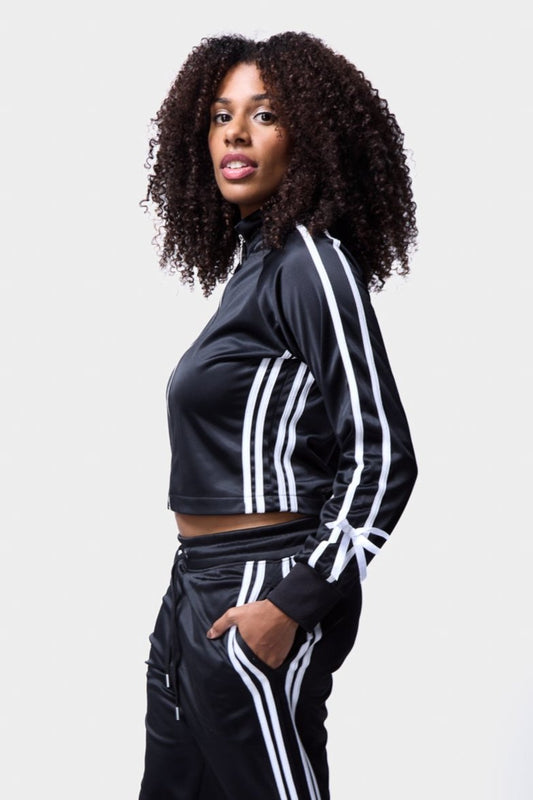 STRIPE SLEEVE BOW DETAIL TRACK TOP