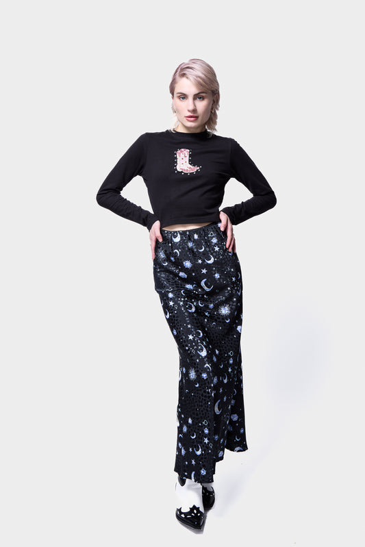 MOON PRINT SATIN MAXI SKIRT