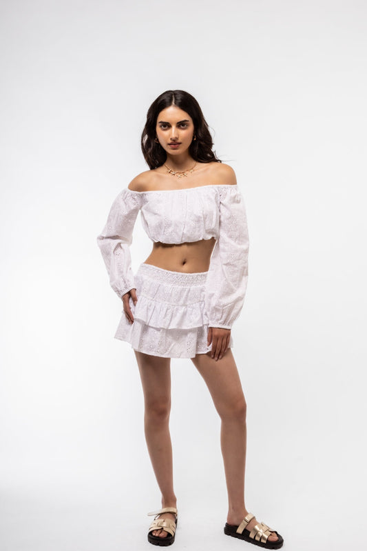 OFF-SHOULDER TOP BRODERIE DETAIL