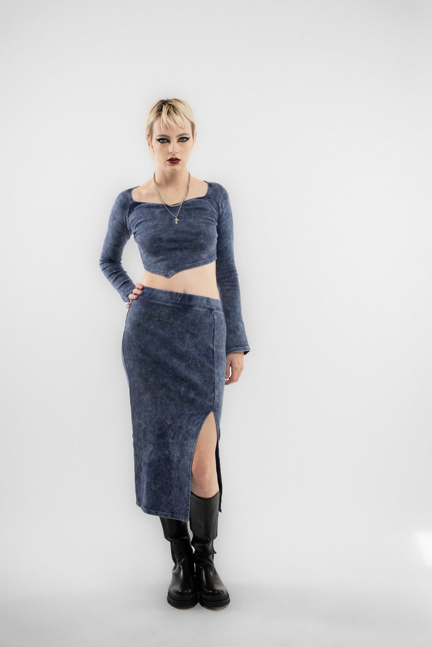 Introducing the Grunge Edge Fitted Midi Skirt – the ultimate piece to flatter any shape while adding a bold, edgy twist to your style. Designed to hug your curves, this figure-flattering skirt combines comfort and attitude, making it the perfect addition to any wardrobe.