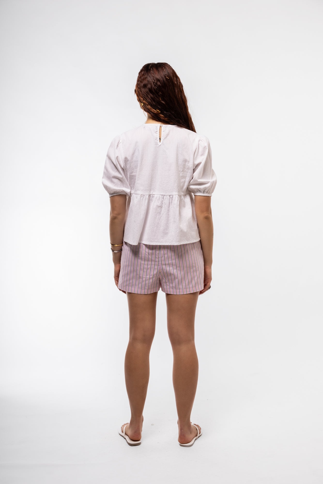 TIE-FRONT PUFF SLEEVE COTTON TOP