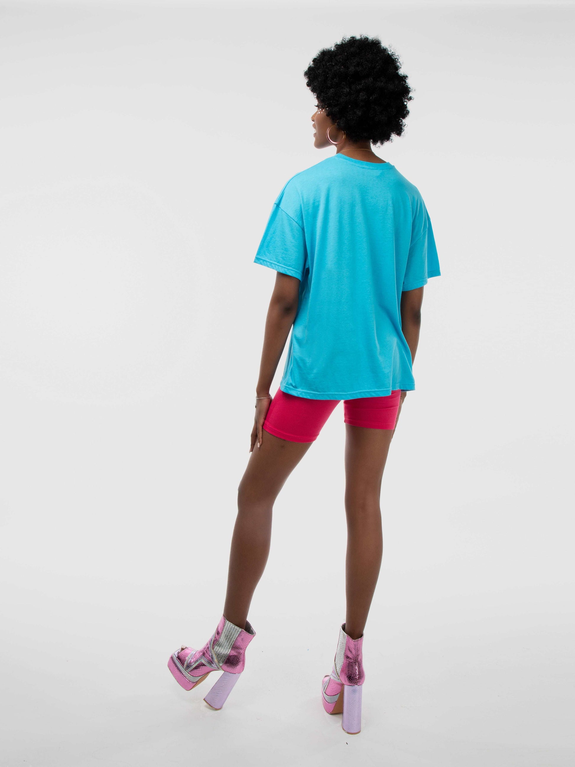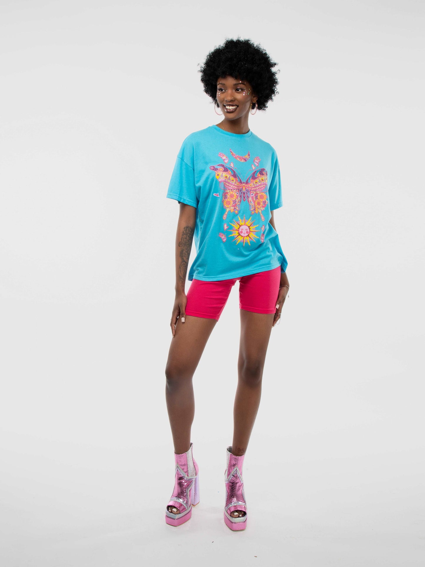 BUTTERFLY PRINT OVERSIZED TEE IN AQUA BLUE