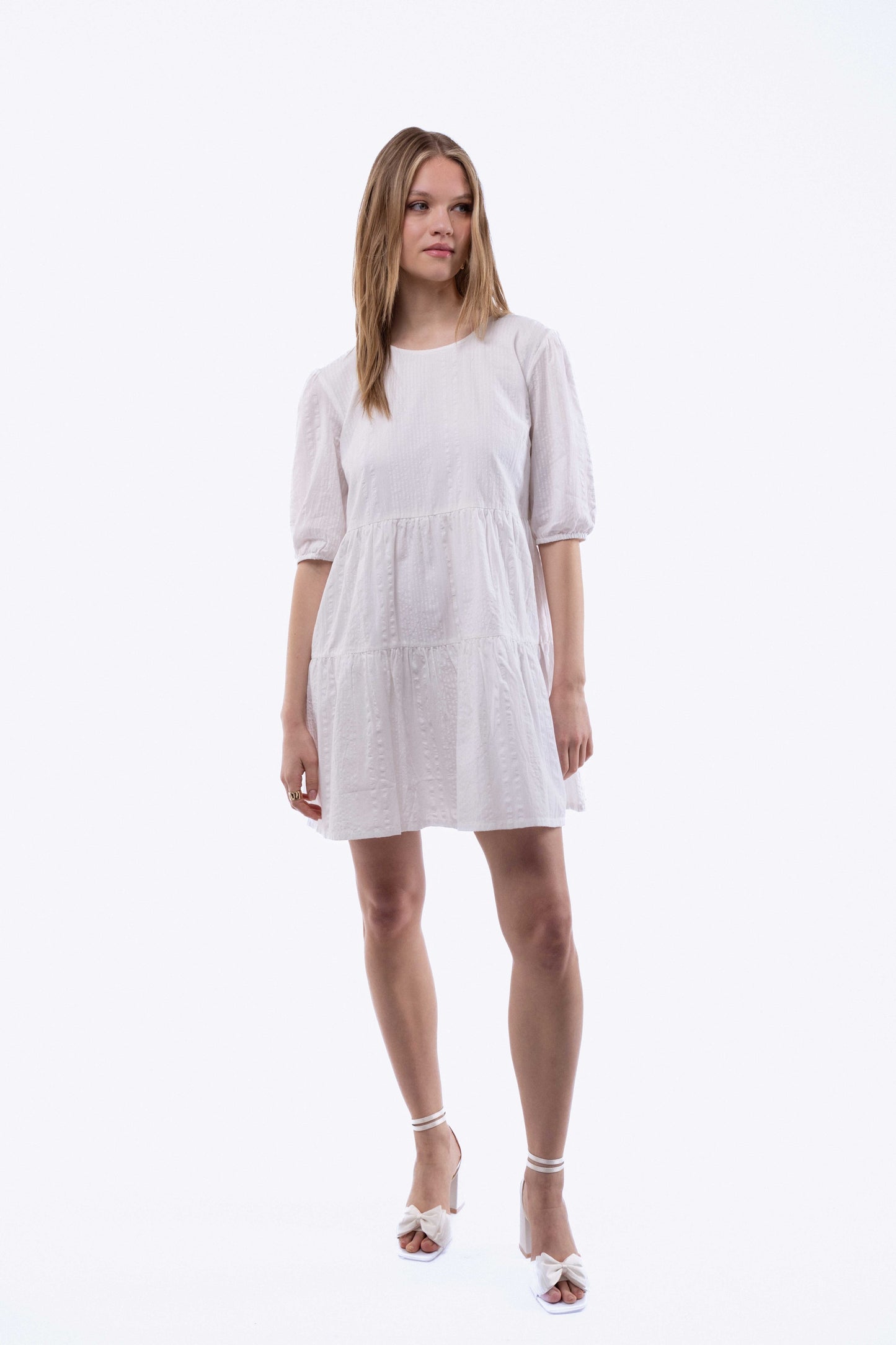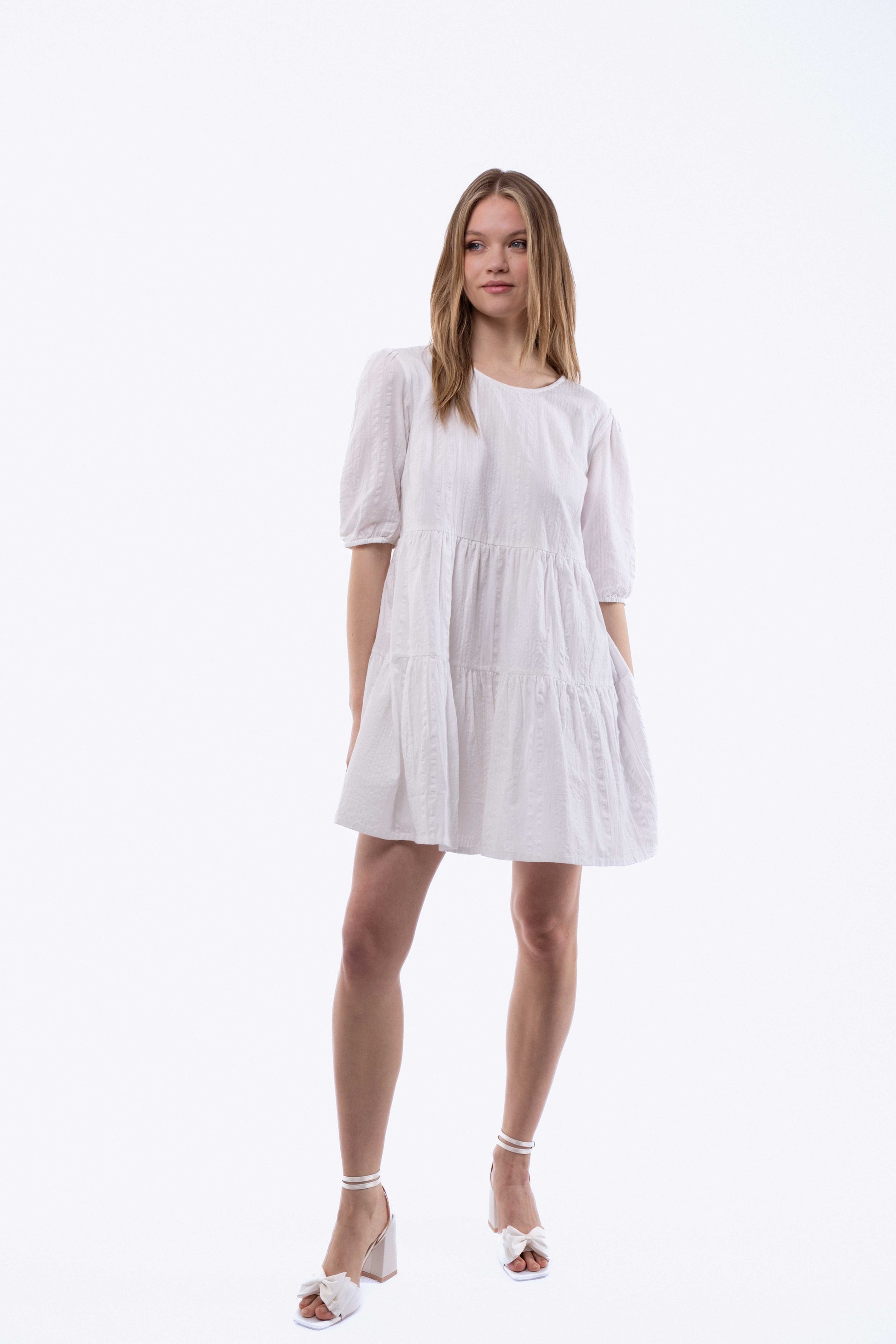 Elevate your everyday wardrobe with our Crew Neck Tiered Smock Dress. Crafted from soft, lightweight fabric, this dress offers a relaxed, flattering fit that effortlessly transitions from casual days to stylish outings. The classic crew neck adds a touch of simplicity, while the tiered design creates a flowy, feminine silhouette that drapes beautifully over the body.