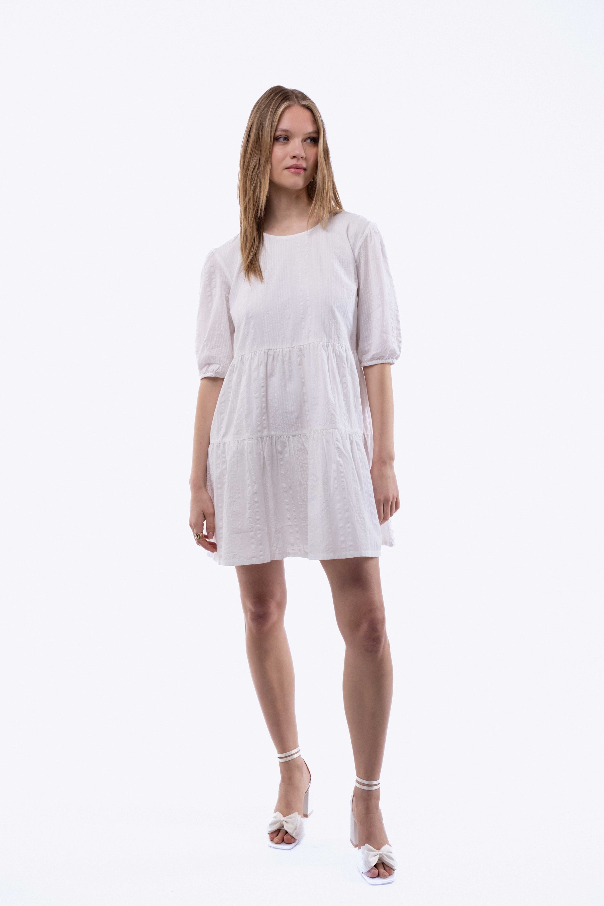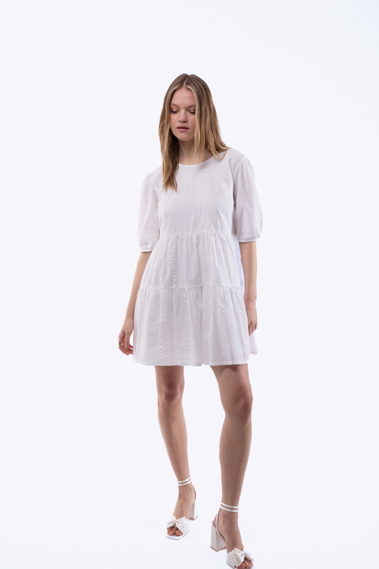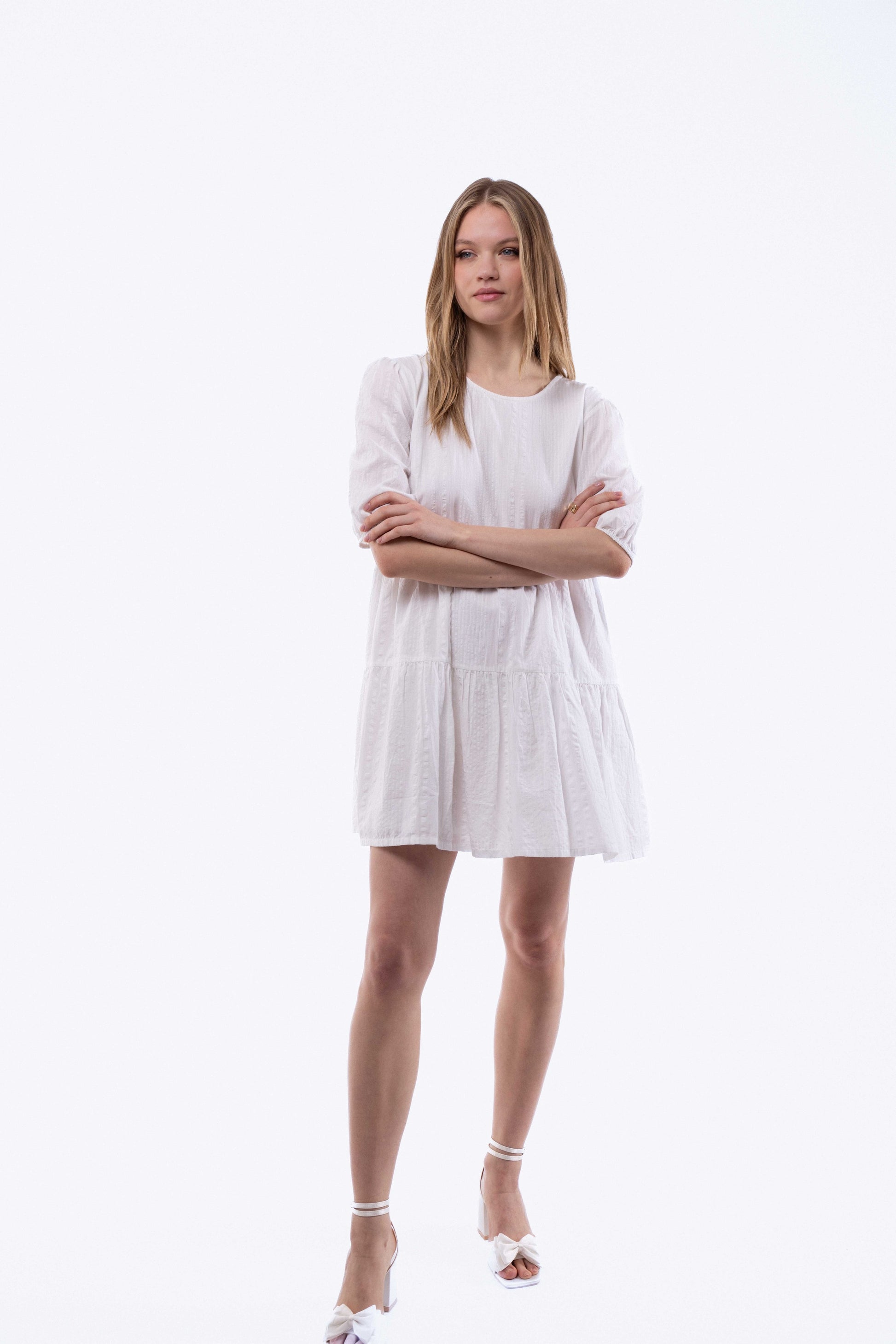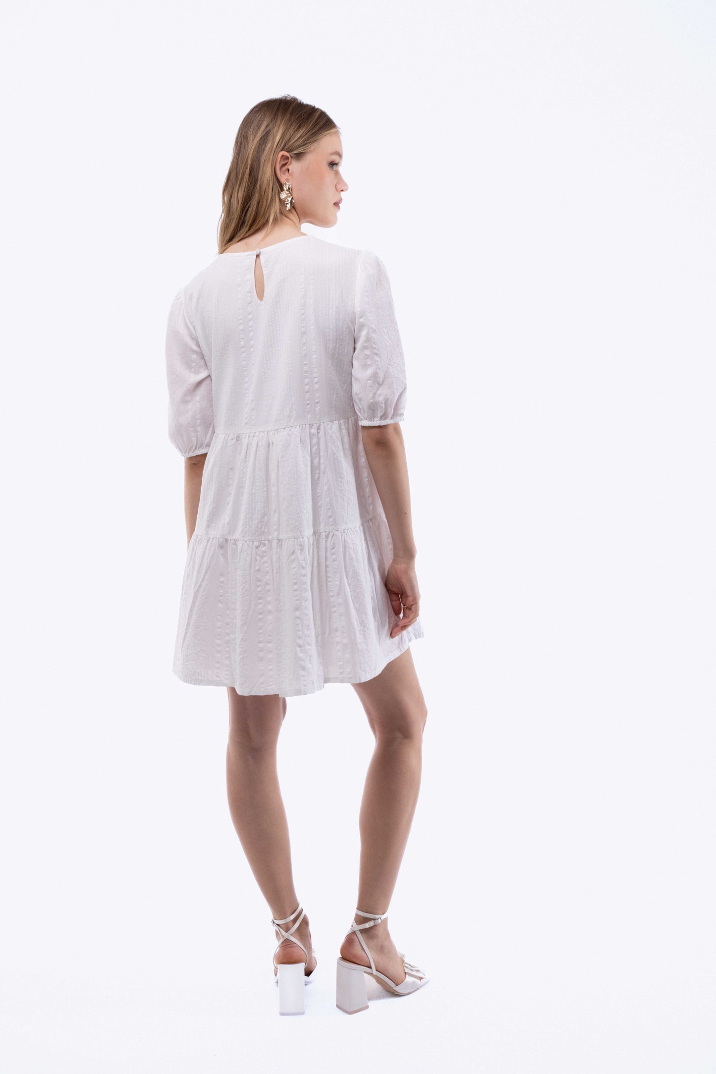 Complete the look with a denim jacket or a chic scarf for extra flair, and you're ready to take on the day. Whether you're heading to brunch, running errands, or enjoying a weekend getaway, this tiered smock dress brings effortless style and comfort together in one wardrobe staple.