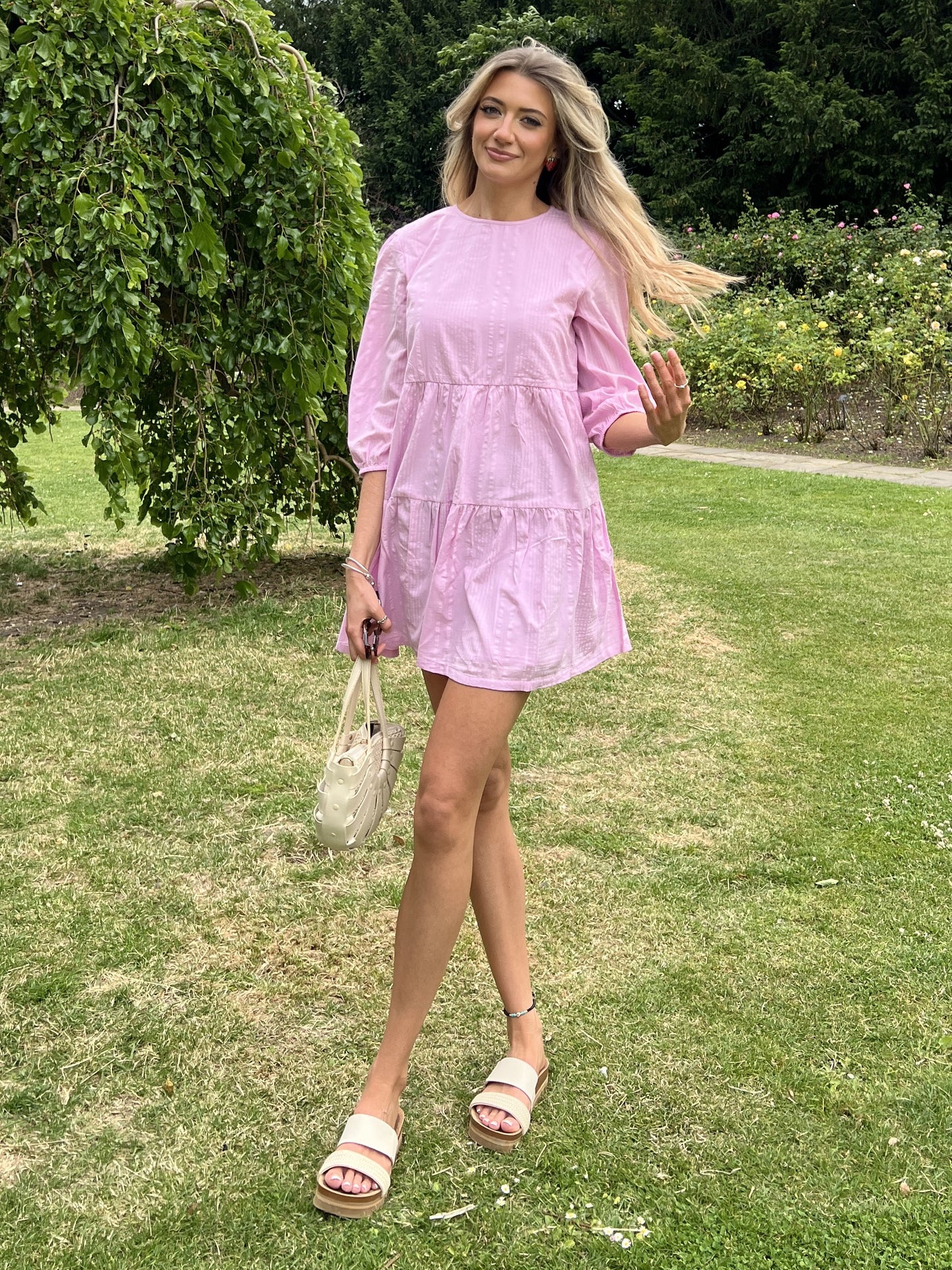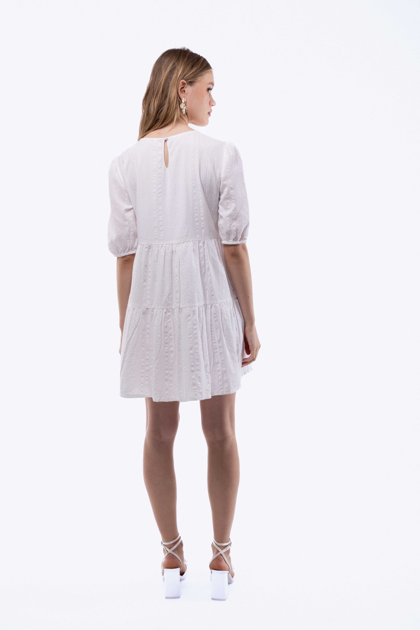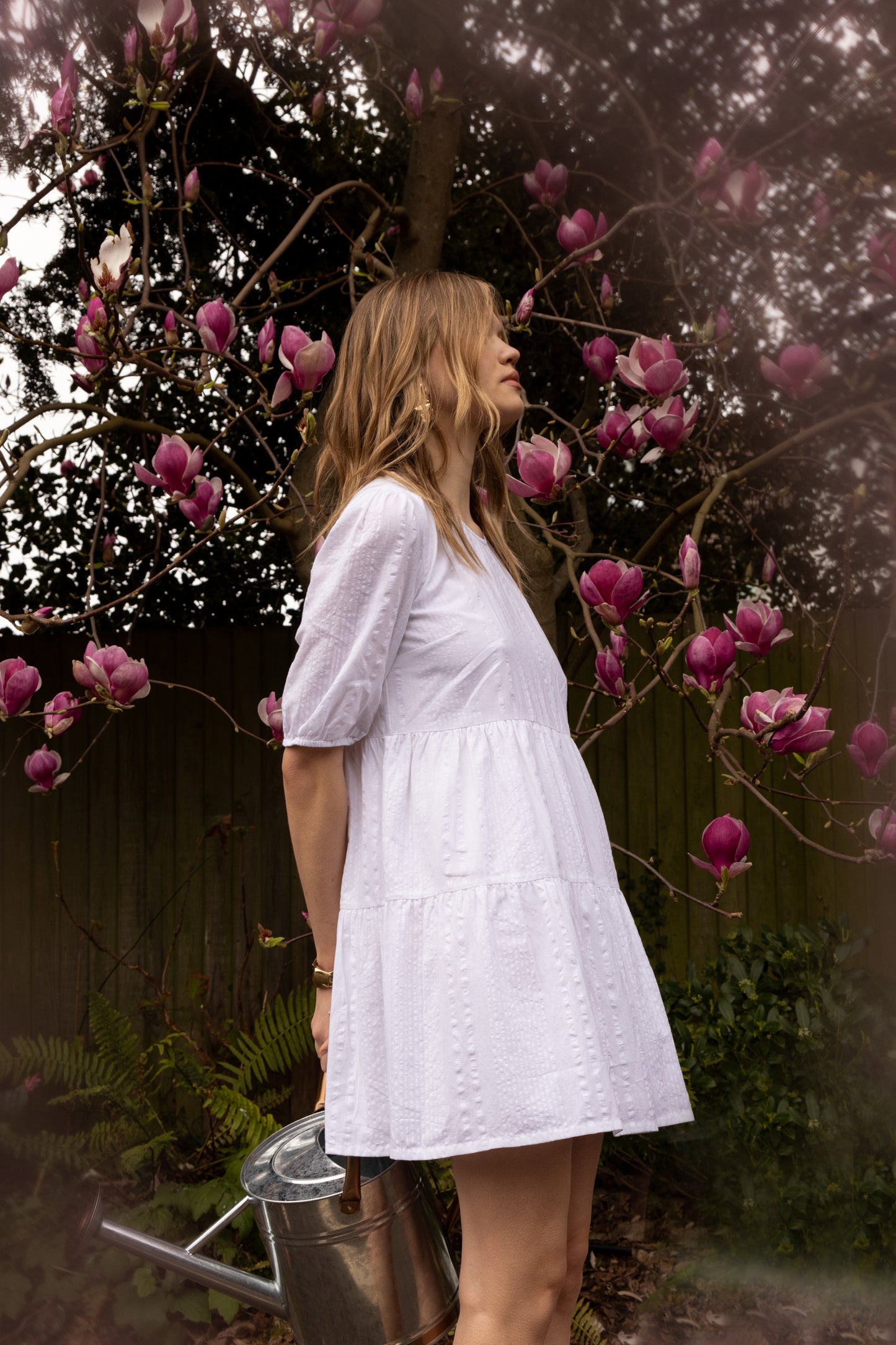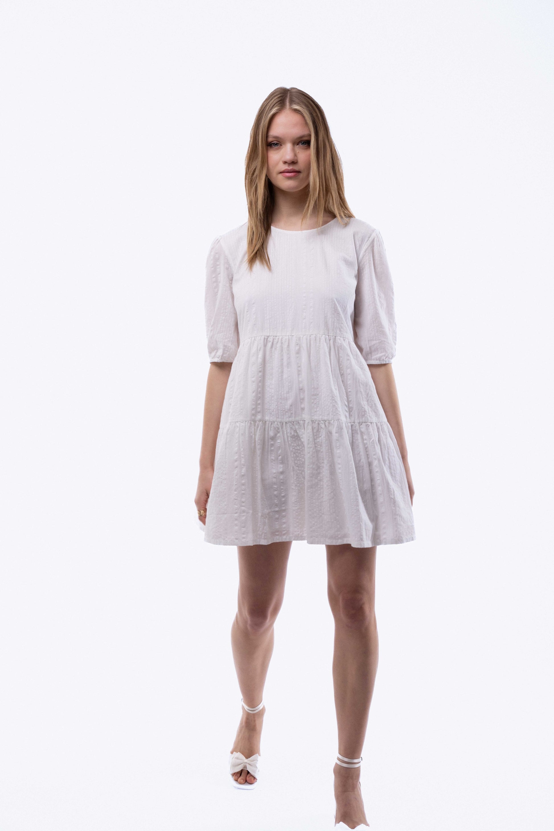 Complete the look with a denim jacket or a chic scarf for extra flair, and you're ready to take on the day. Whether you're heading to brunch, running errands, or enjoying a weekend getaway, this tiered smock dress brings effortless style and comfort together in one wardrobe staple.