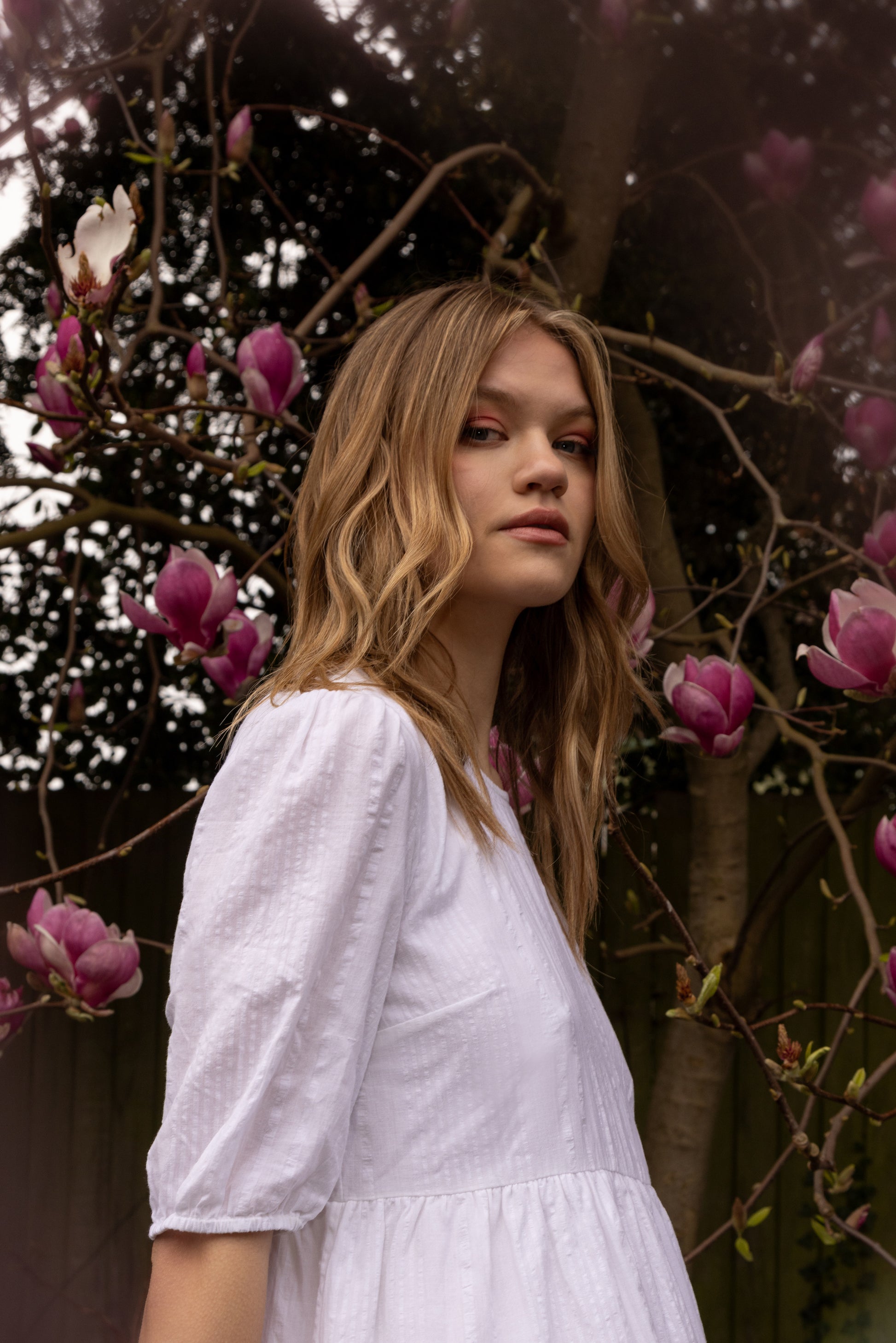 - Model Height: 5ft 7”Design: Soft Fabric, Crew Neck, Tiered Smock Style, Relaxed Fit