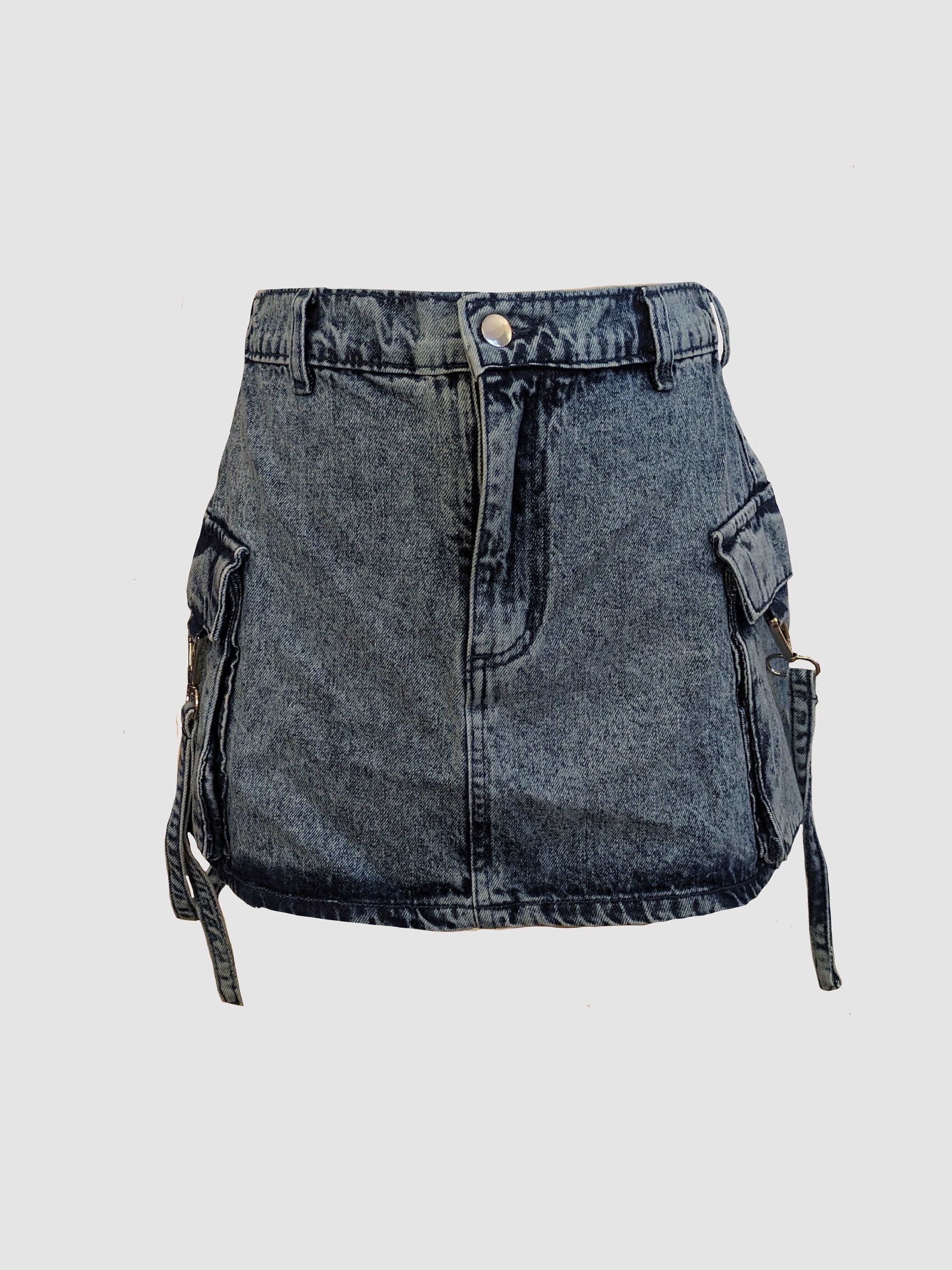 Style this Low rise Denim Mini Skirt with an Oversized Shirt for a relaxed look.