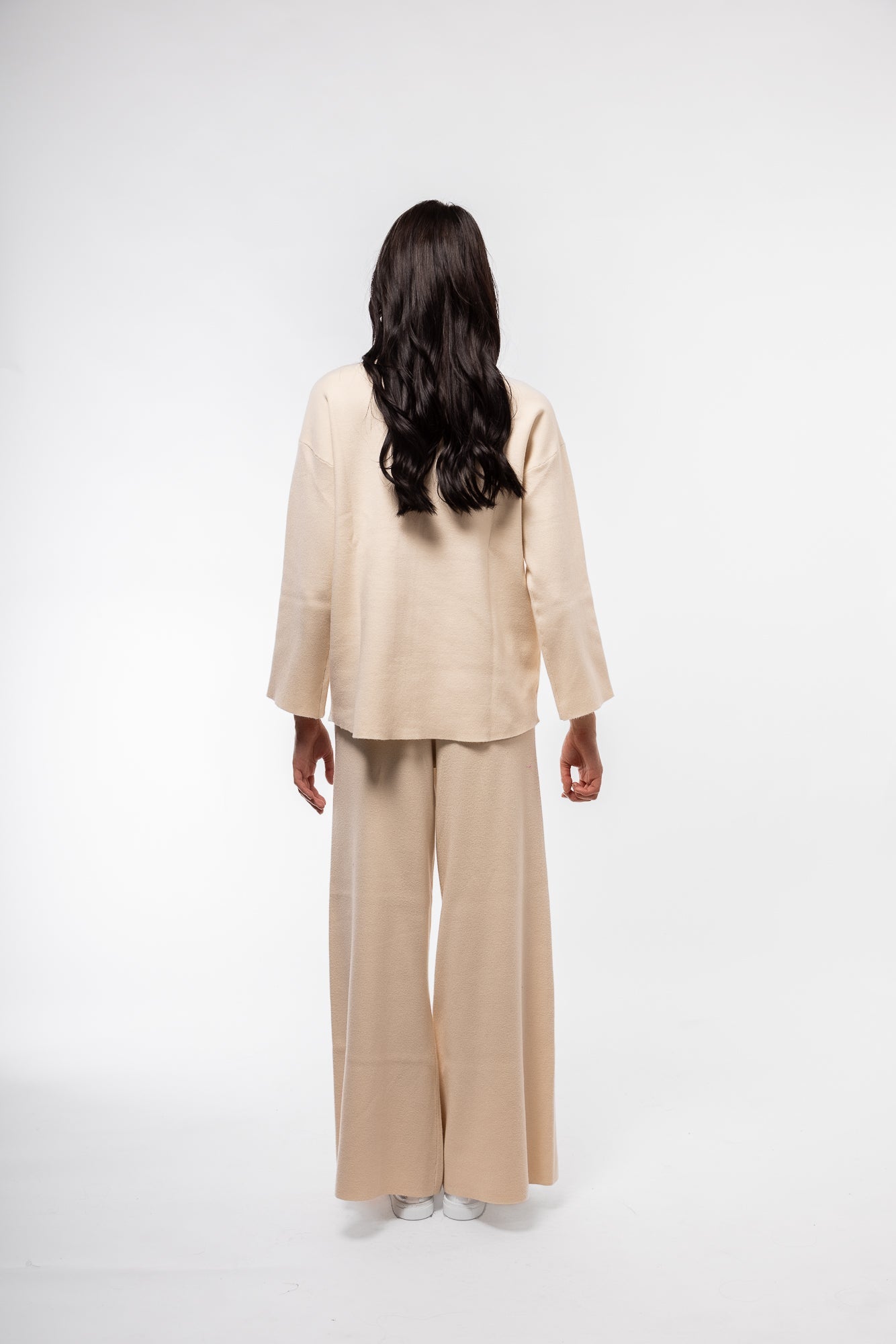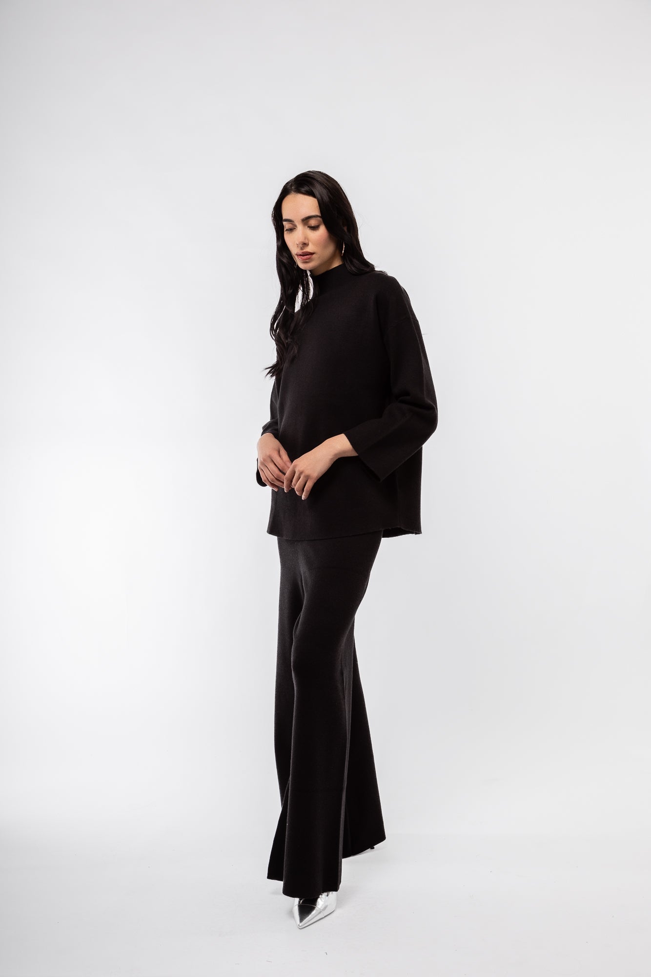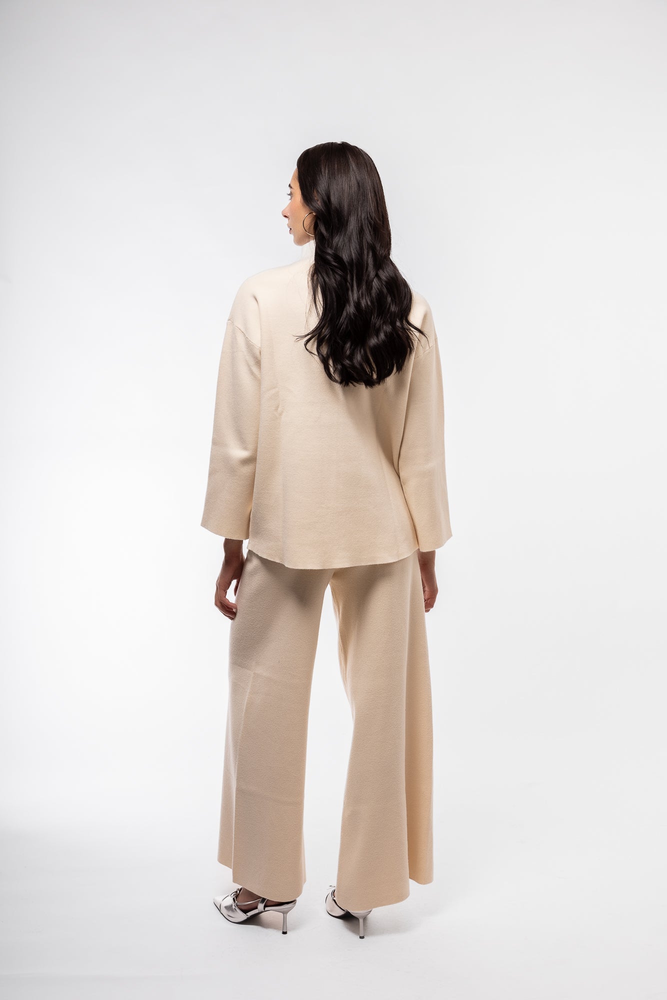 The relaxed yet tailored silhouette offers effortless sophistication, while the gentle stretch ensures comfort throughout the day. With its versatile design, this knitted top pairs perfectly with everything from high-waisted trousers to skirts, making it an ideal choice for both casual outings and more polished looks.