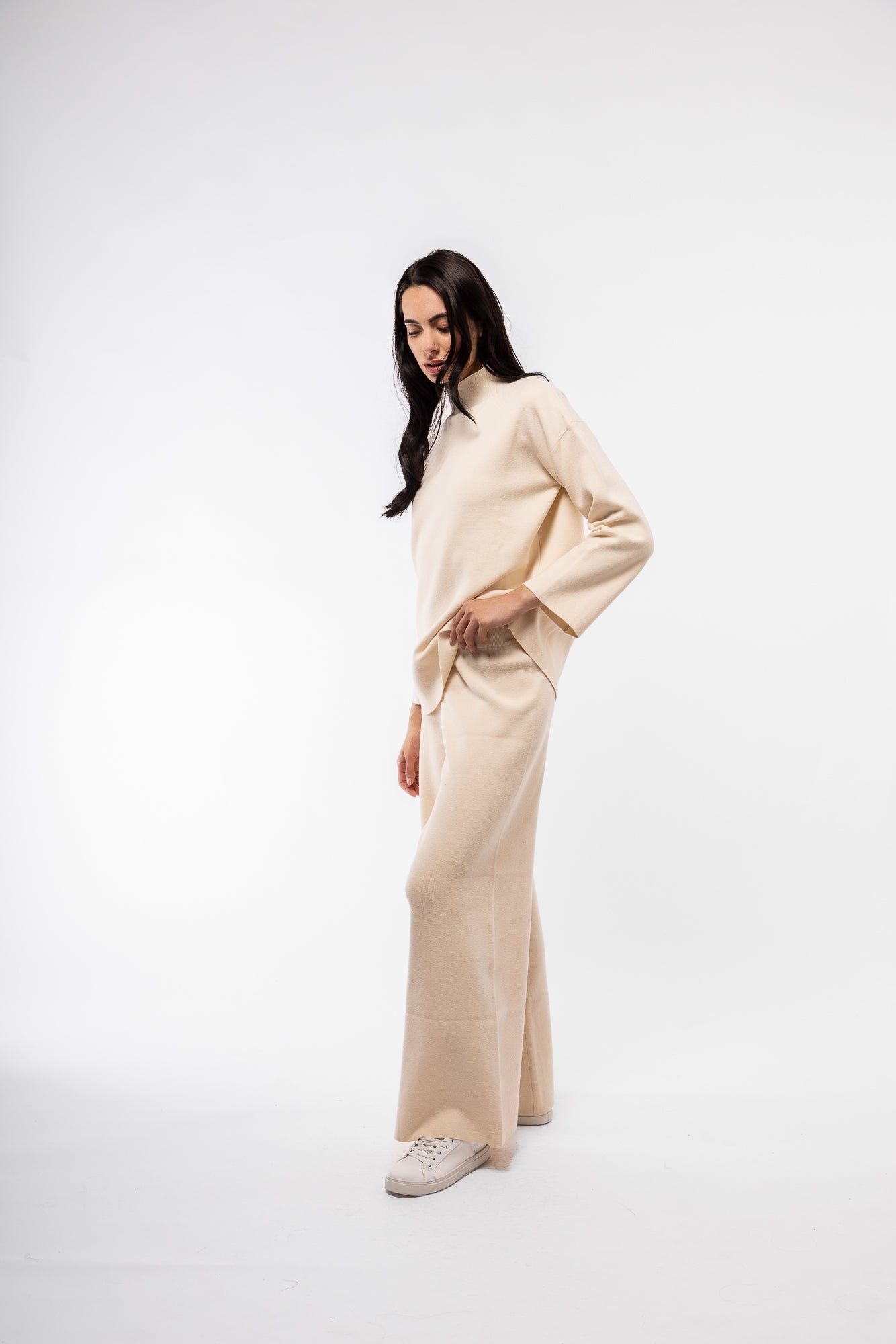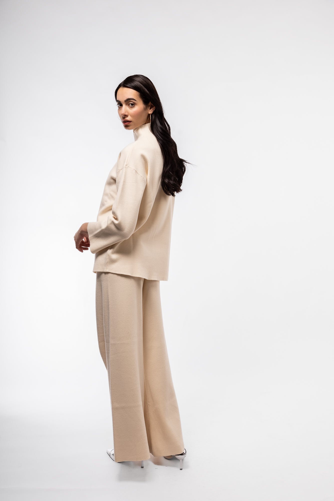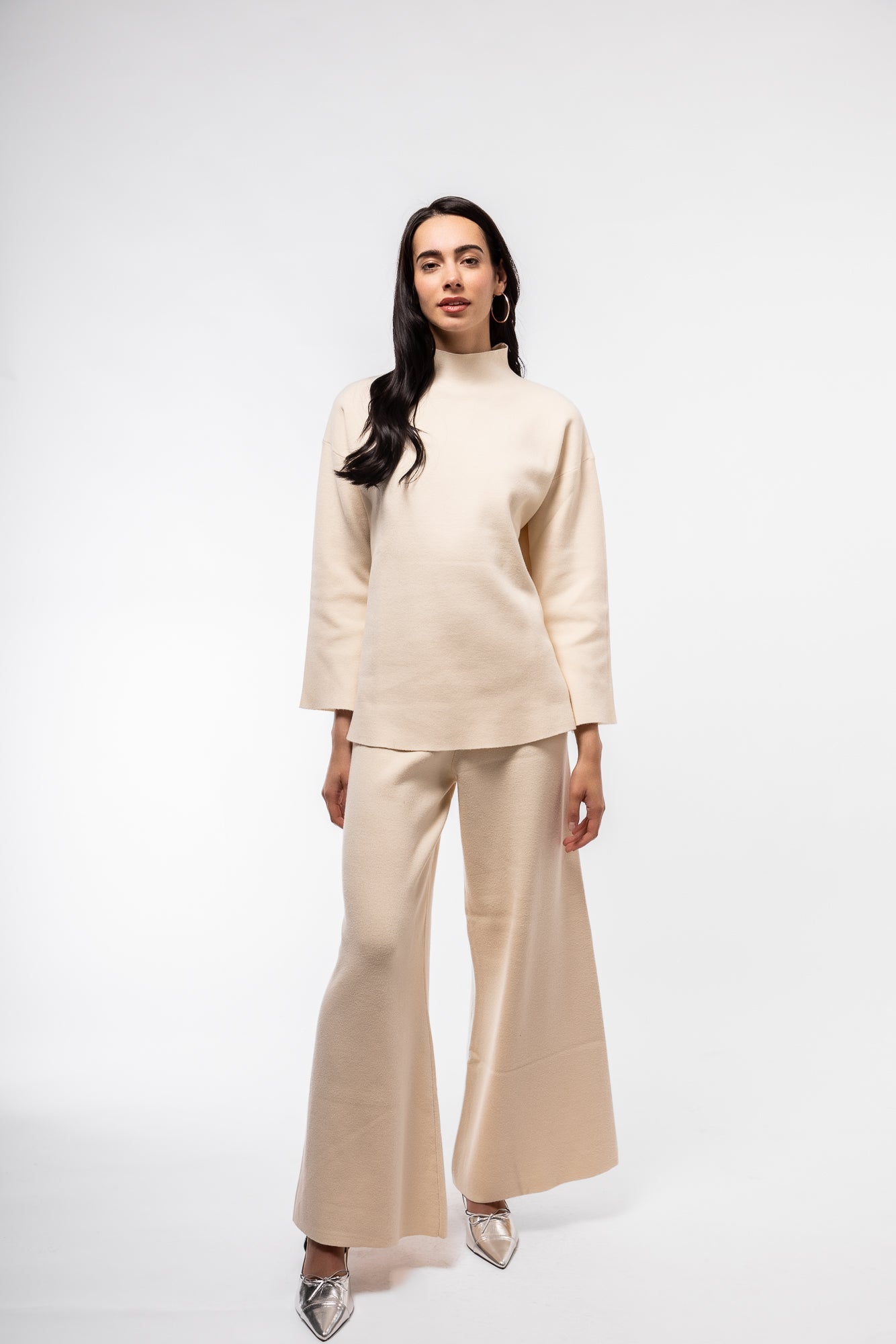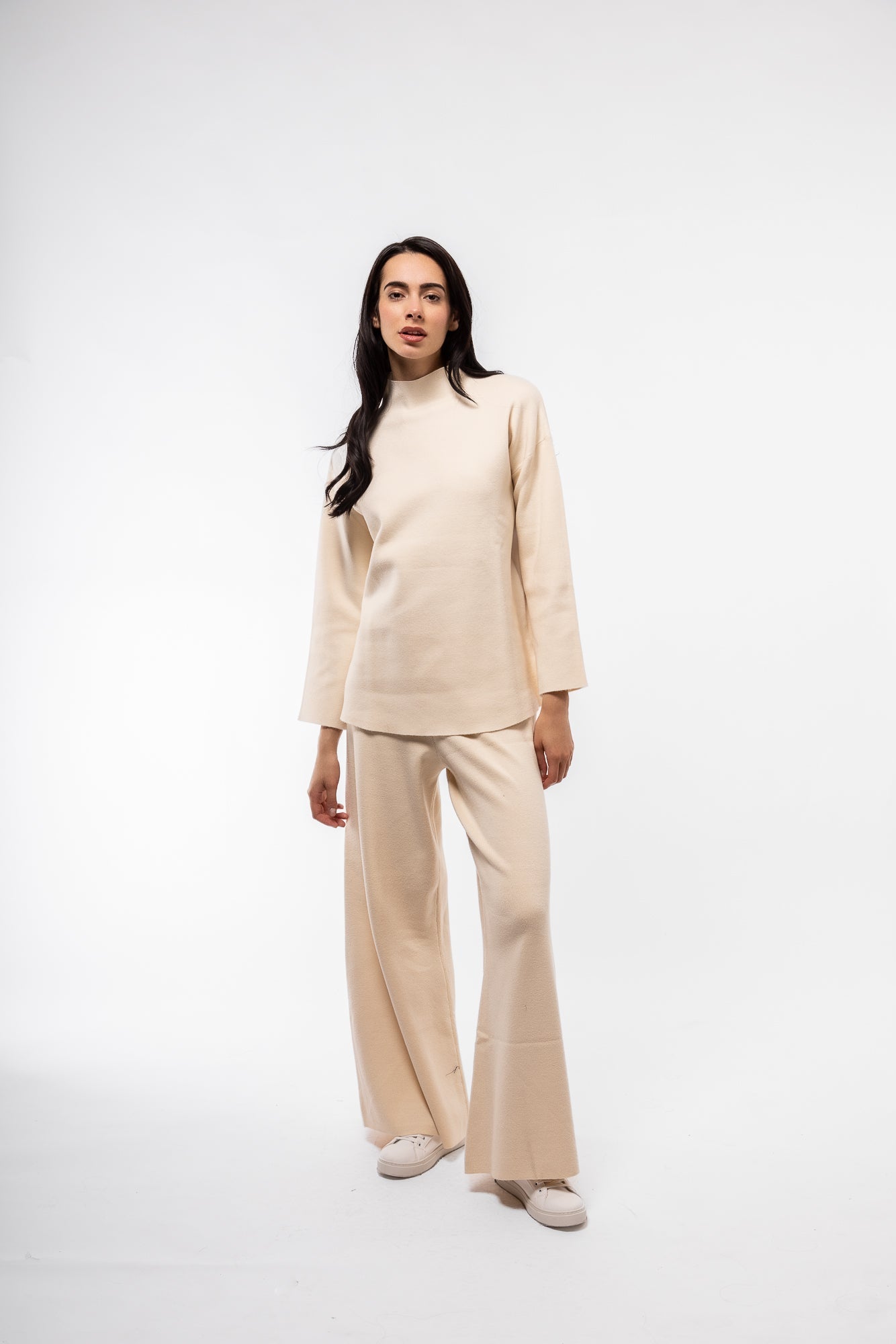 The relaxed yet tailored silhouette offers effortless sophistication, while the gentle stretch ensures comfort throughout the day. With its versatile design, this knitted top pairs perfectly with everything from high-waisted trousers to skirts, making it an ideal choice for both casual outings and more polished looks.