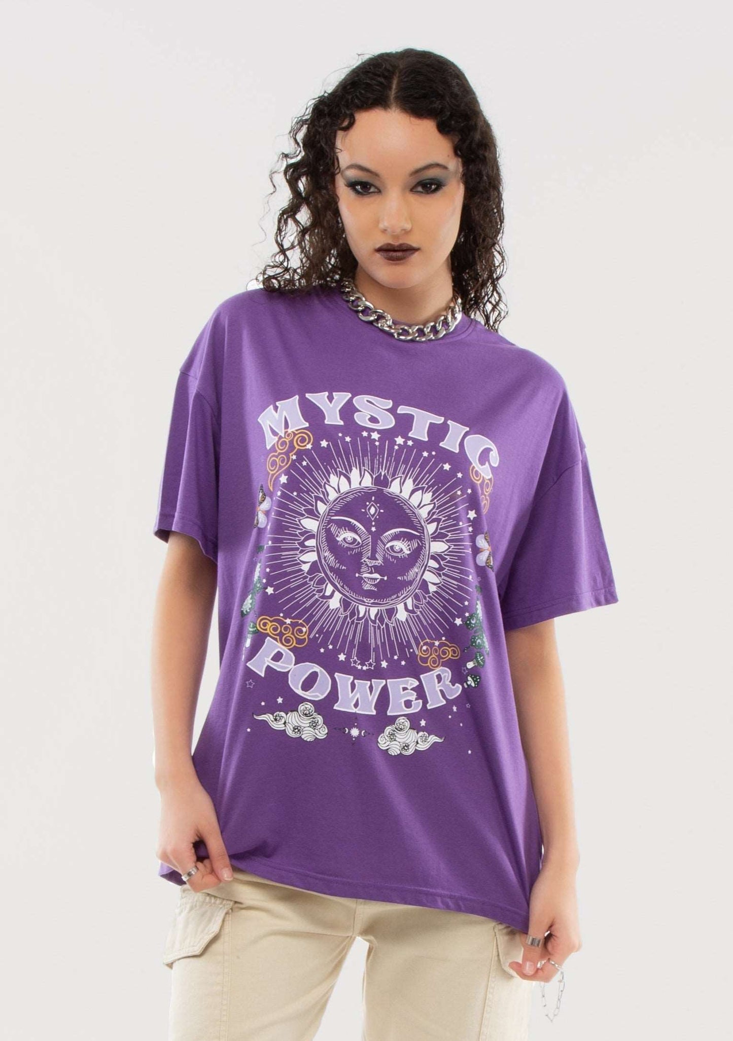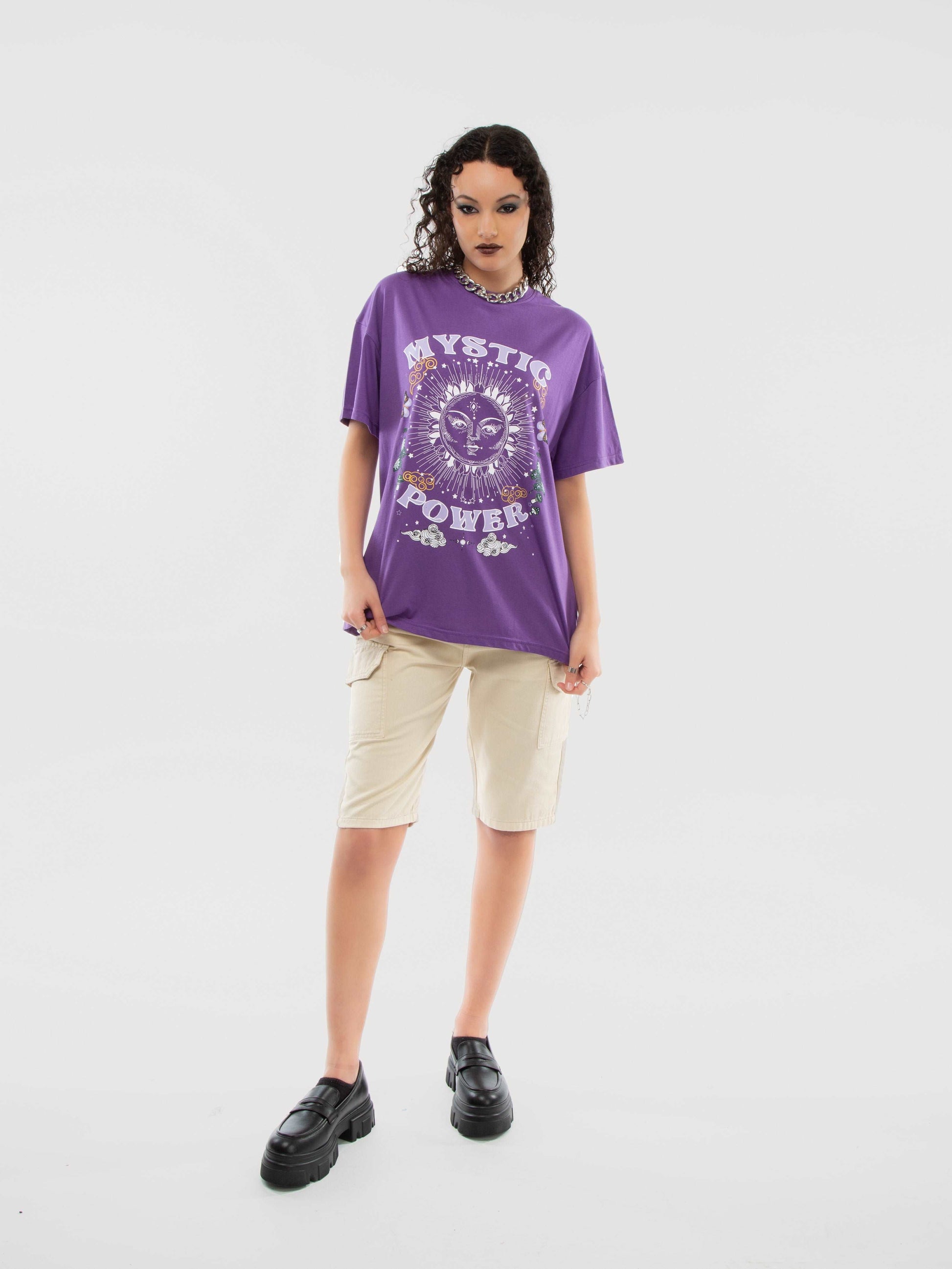 MYSTICAL POWER PRINT OVERSIZED T-SHIRT IN PURPLE