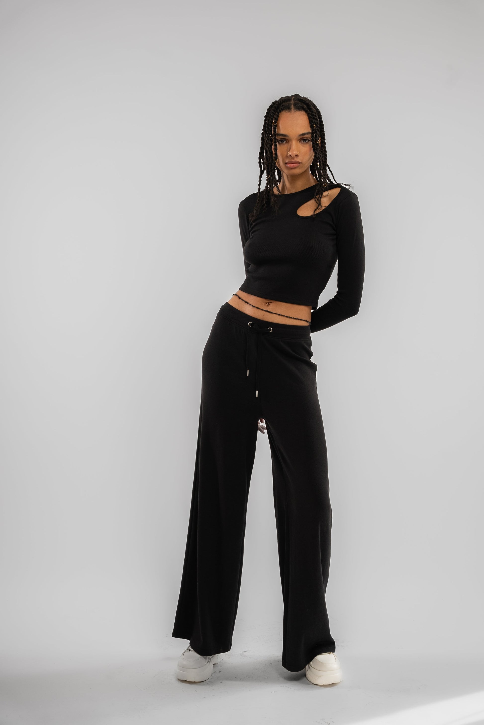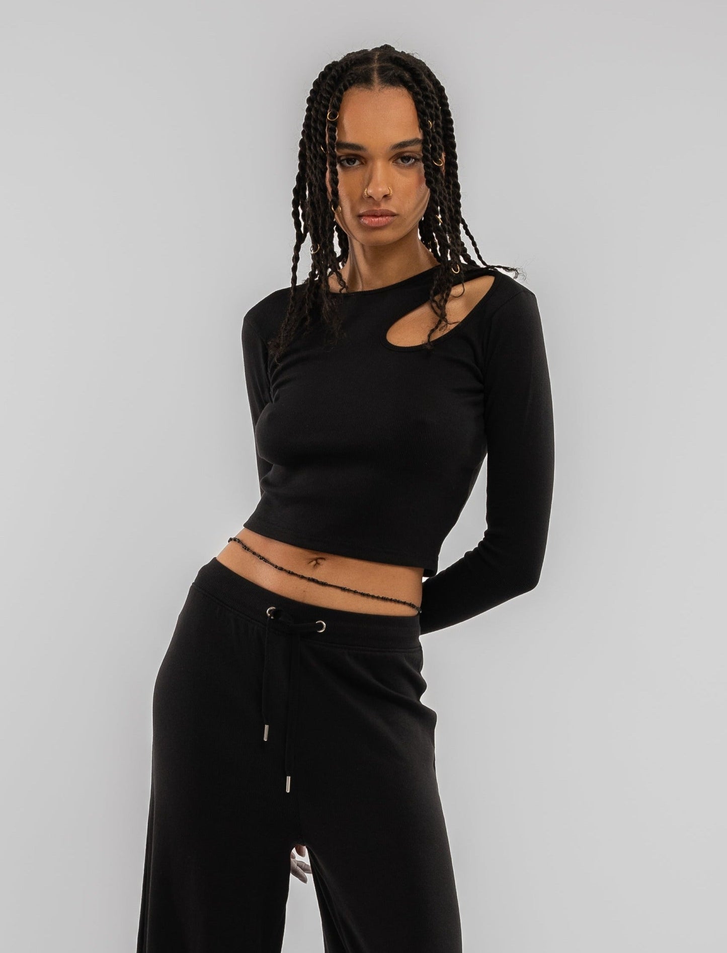RIBBED CUT OUT DETAIL LONG SLEEVE CROP TOP