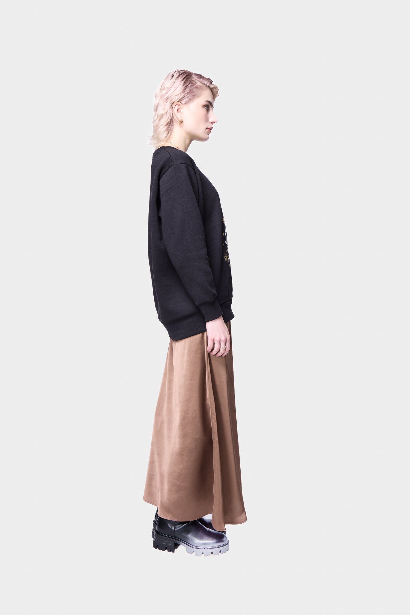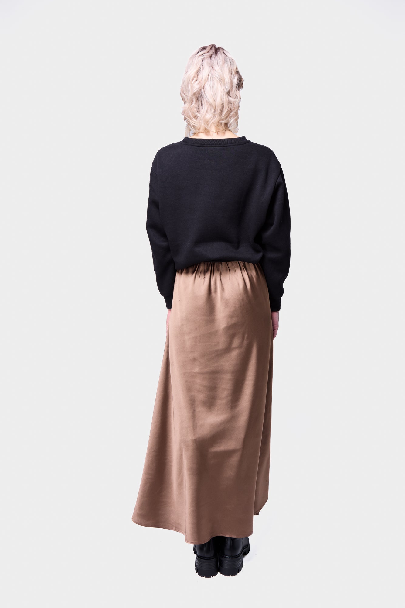 Style it with a fitted blouse and heels for a chic evening ensemble, or pair it with a casual top and sandals for a relaxed yet refined outfit. The Satin Bias Maxi Skirt is a versatile and timeless addition to any wardrobe.