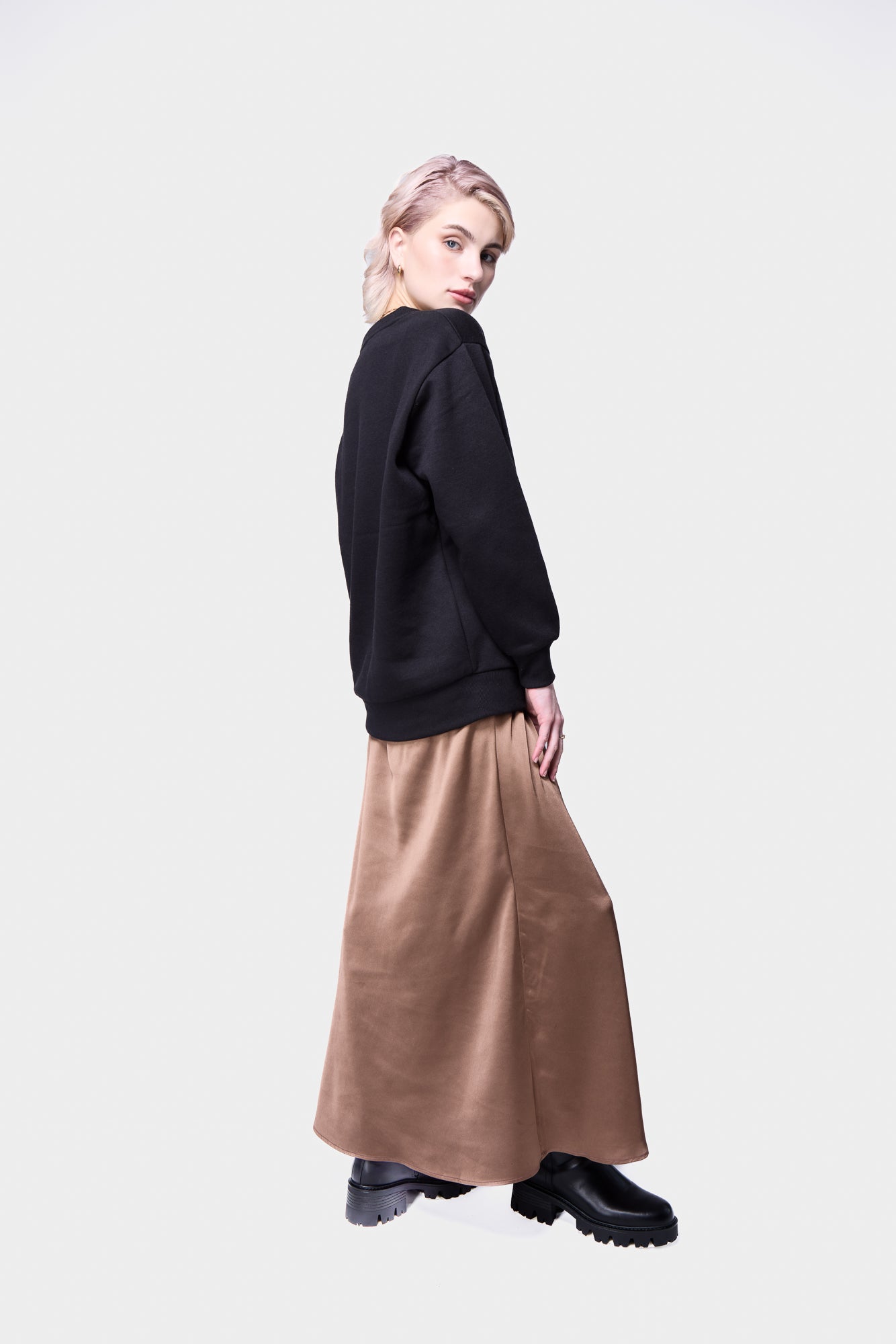 Transform your wardrobe with our Satin Bias Maxi Skirt, a piece that effortlessly blends elegance with modern style. Crafted from smooth satin, this skirt offers a luxurious feel and a polished finish.