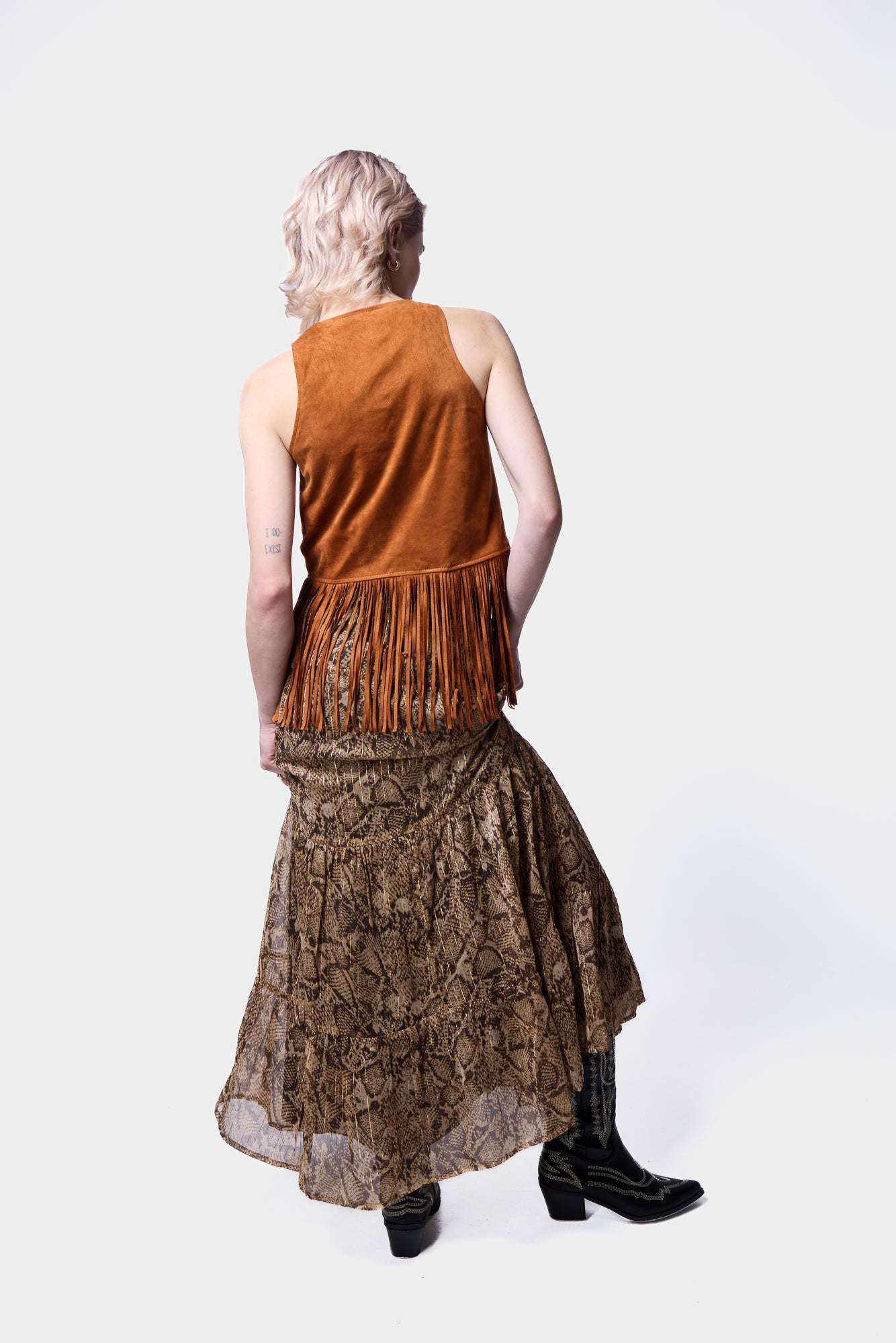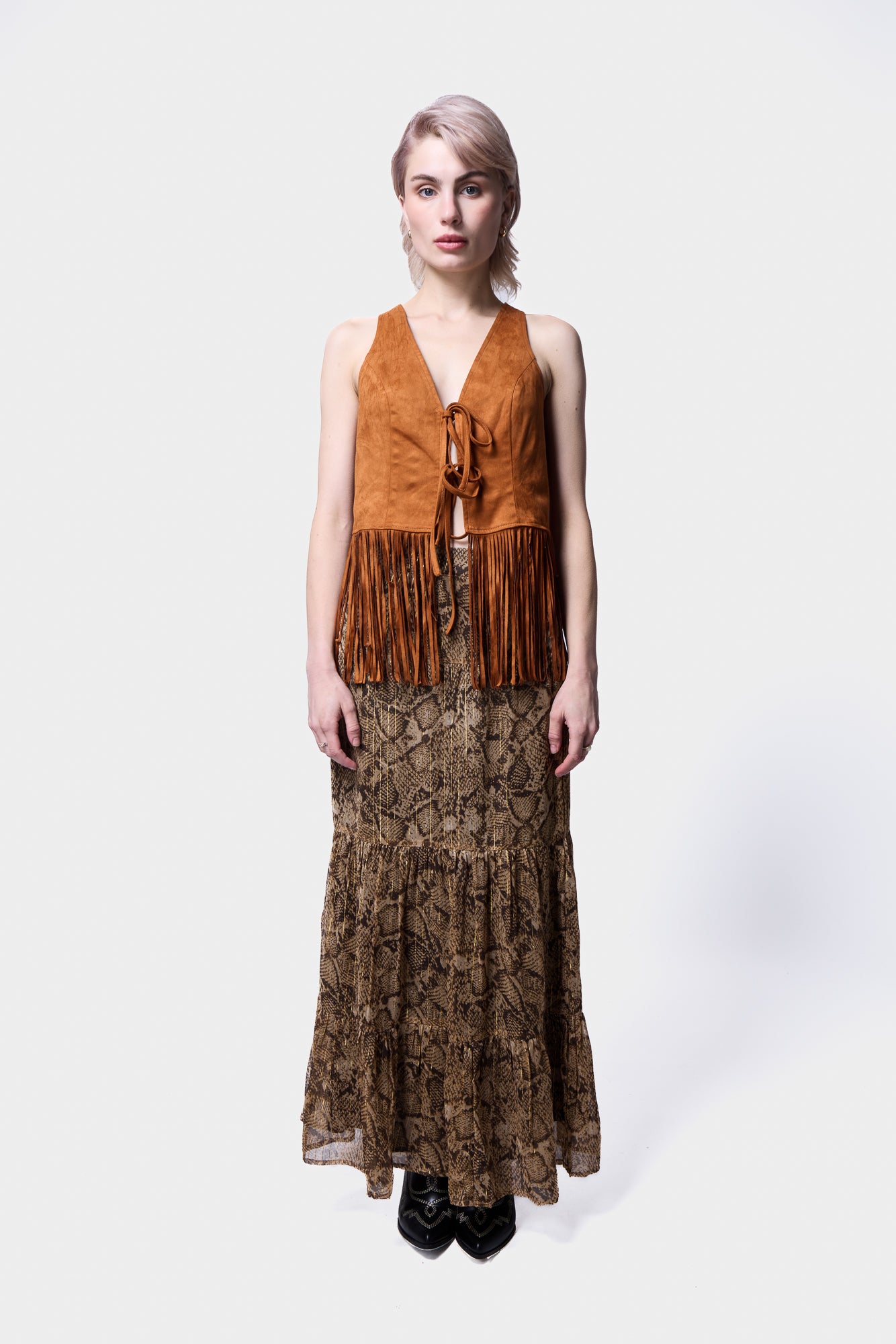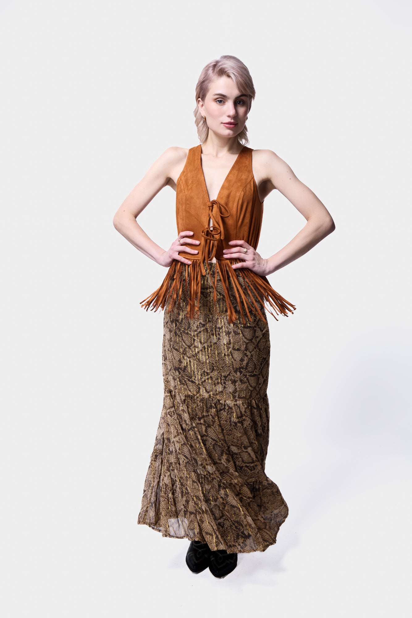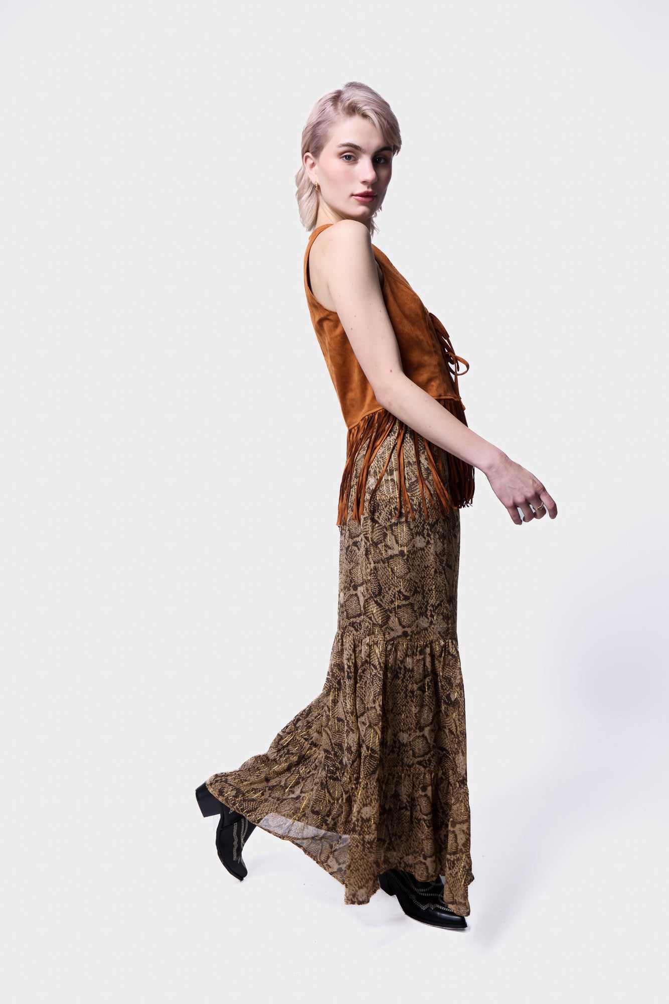 Turn heads with our Snake Print Skirt, where edgy design meets luxurious elegance. This standout piece features a striking snake print, giving your wardrobe a bold, contemporary edge. Adorned with shimmering gold lurex detailing, the skirt offers a touch of glamour, making it perfect for both day and night.
