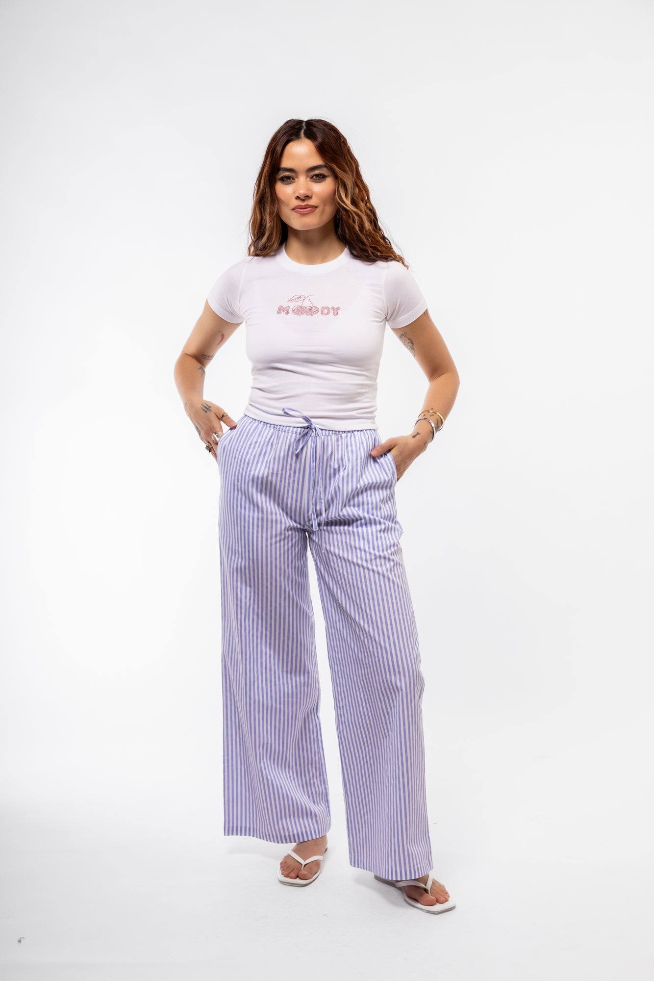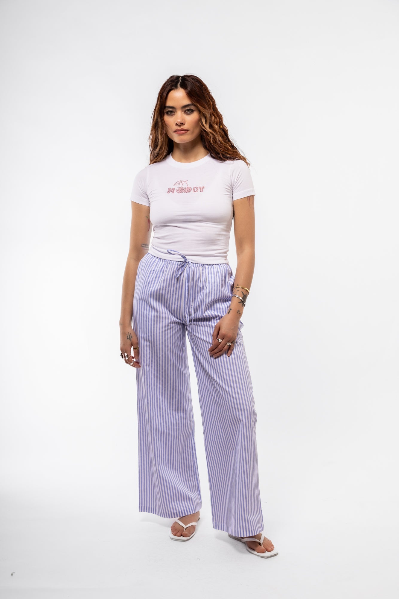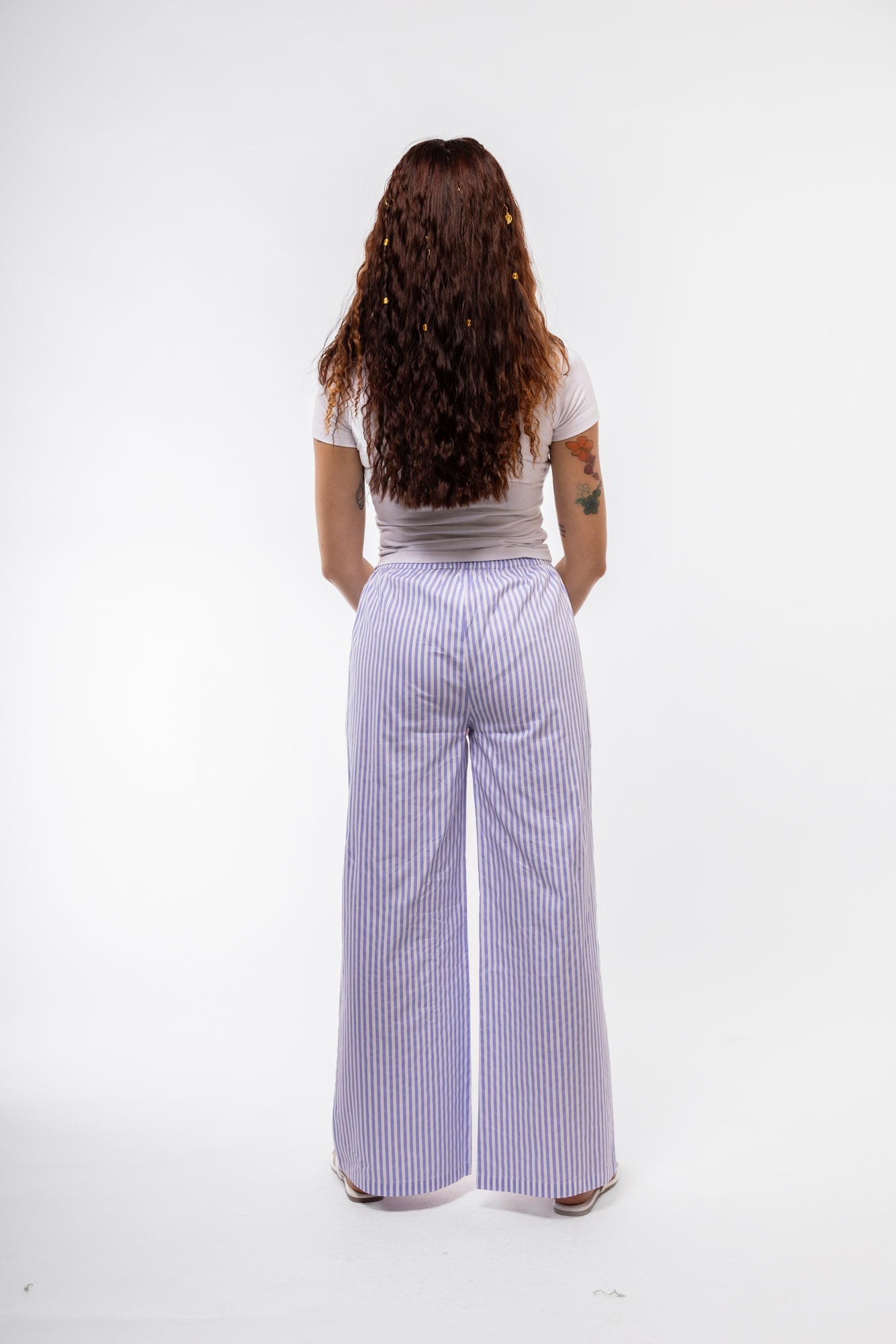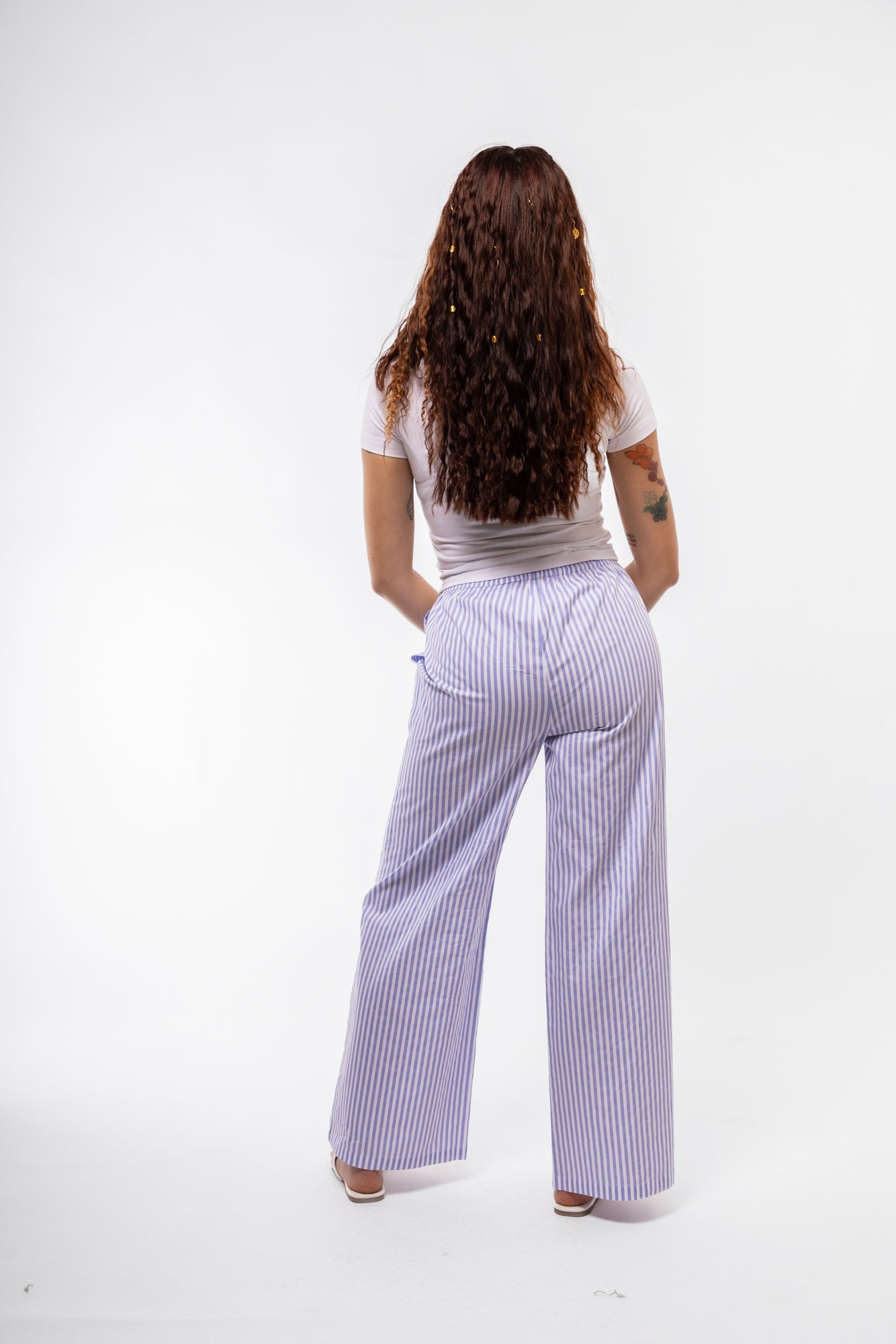 Design: Wide leg, Stripe pattern, Adjustable waist tie, Elasticated back