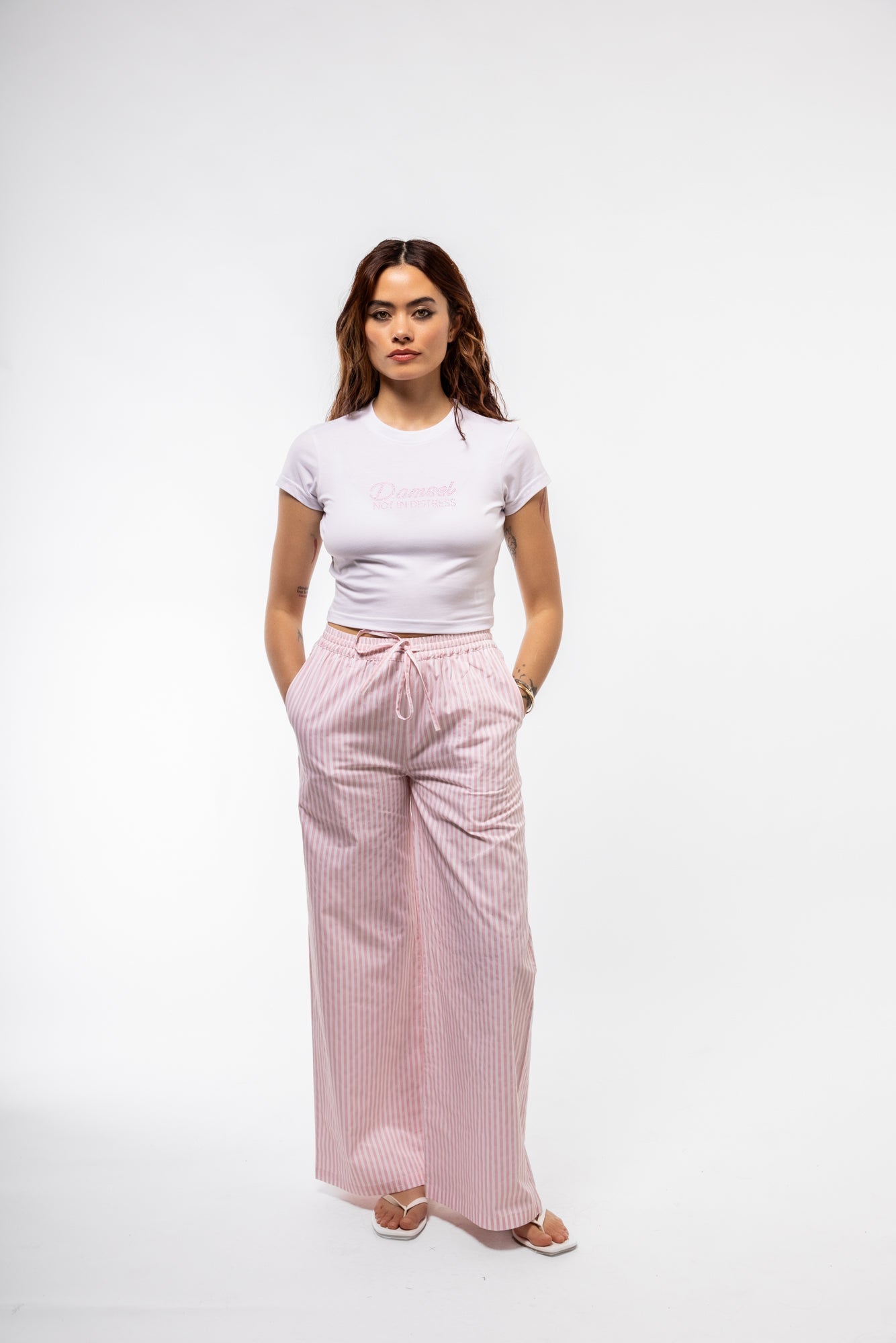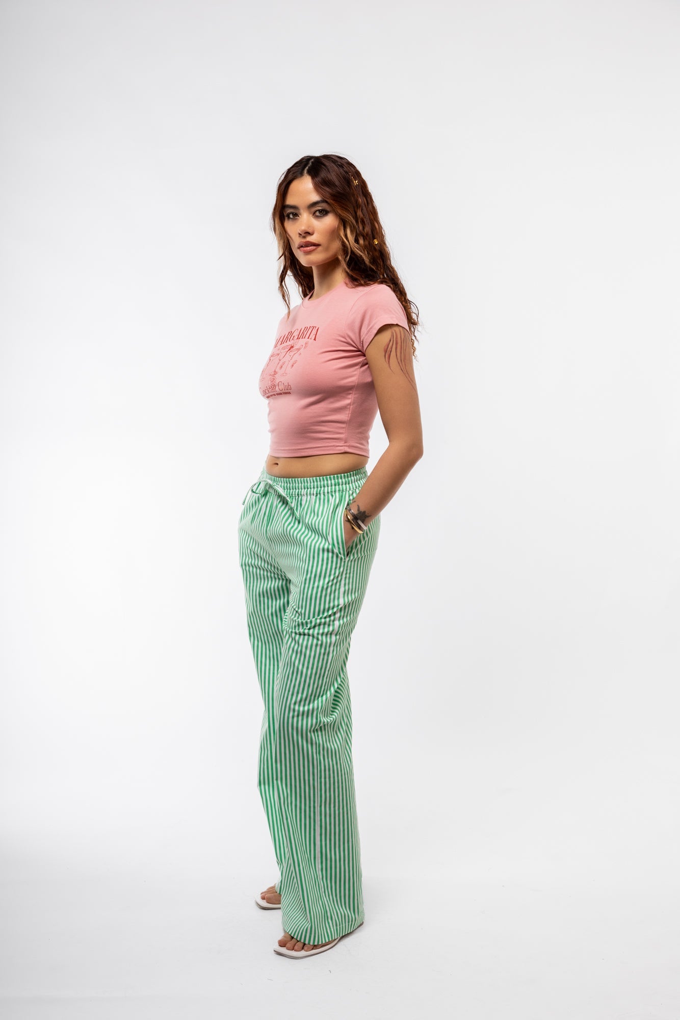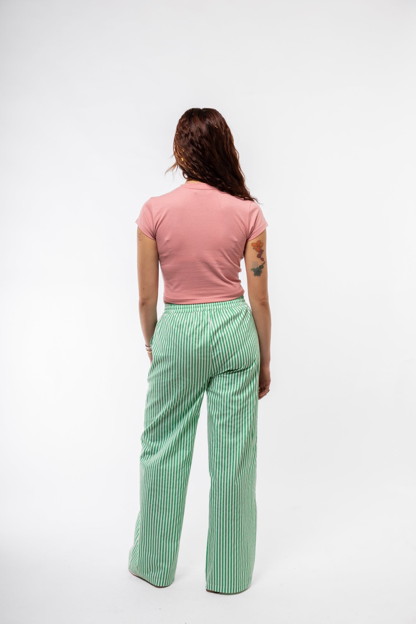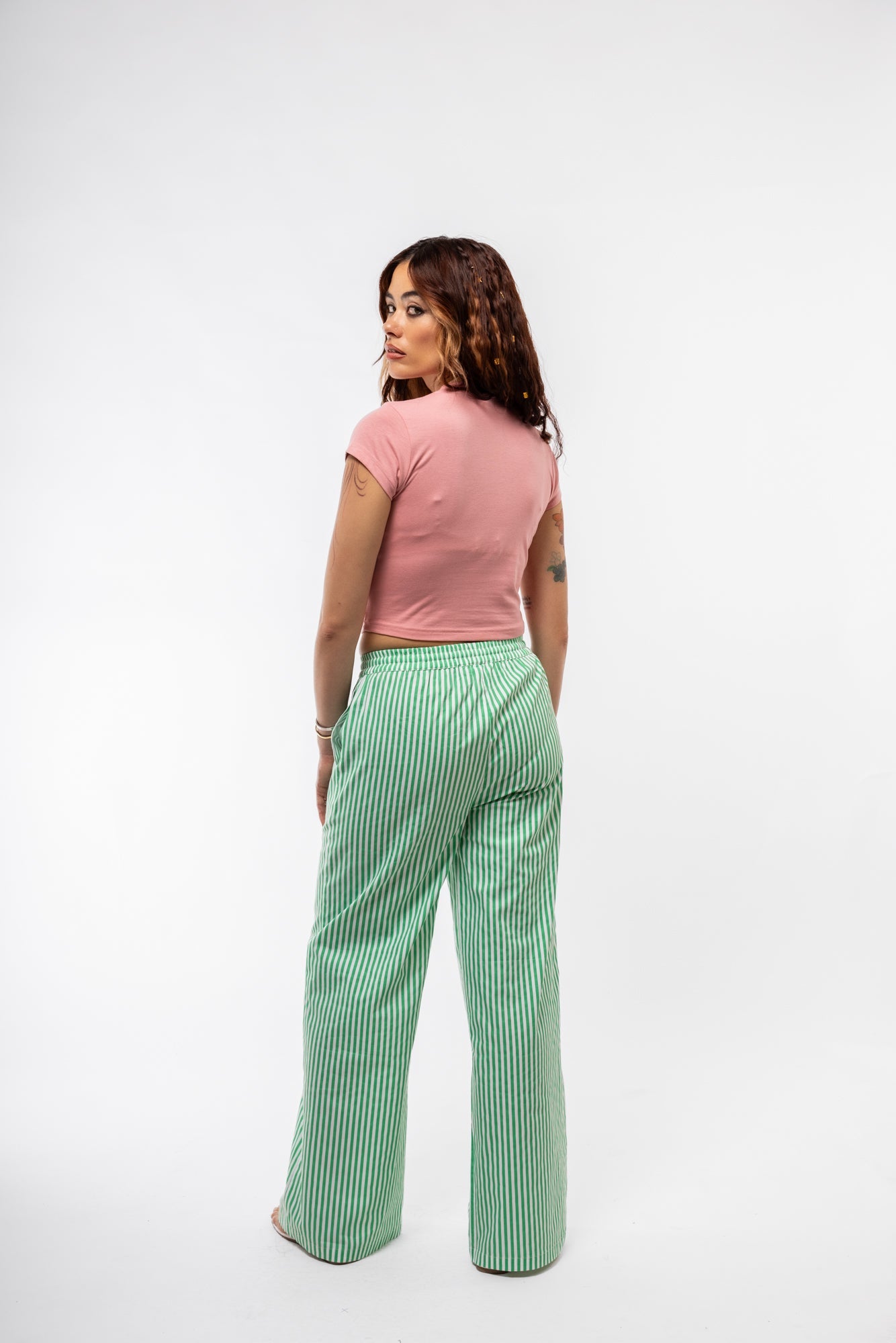 Pair them with a simple tank and sandals for beachside strolls, or dress them up with a lightweight blouse and statement accessories for sunset dinners. Wherever the day takes you, these stripe trousers promise to keep things effortlessly cool and comfortably chic.